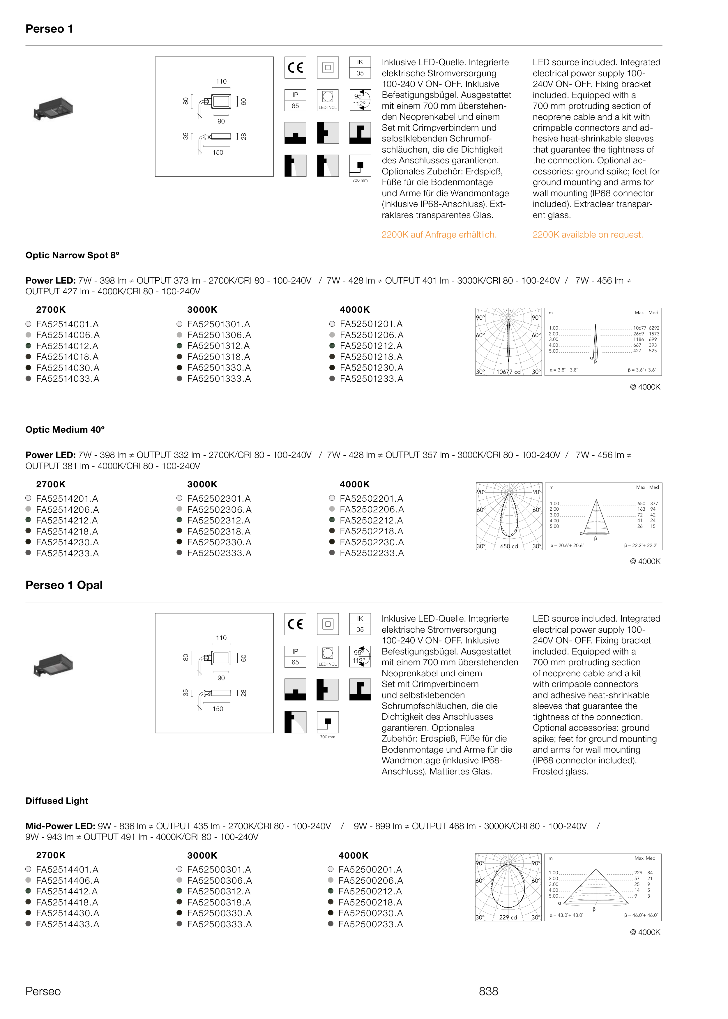 Power LED: 7W - 398 lm ≠ OUTPUT 373 lm - 2700K/CRI 80 - 100-240V / 7W - 428 lm ≠ OUTPUT 401 lm - 3000K/CRI 80 - 100-240V / 7W - 456 lm ≠