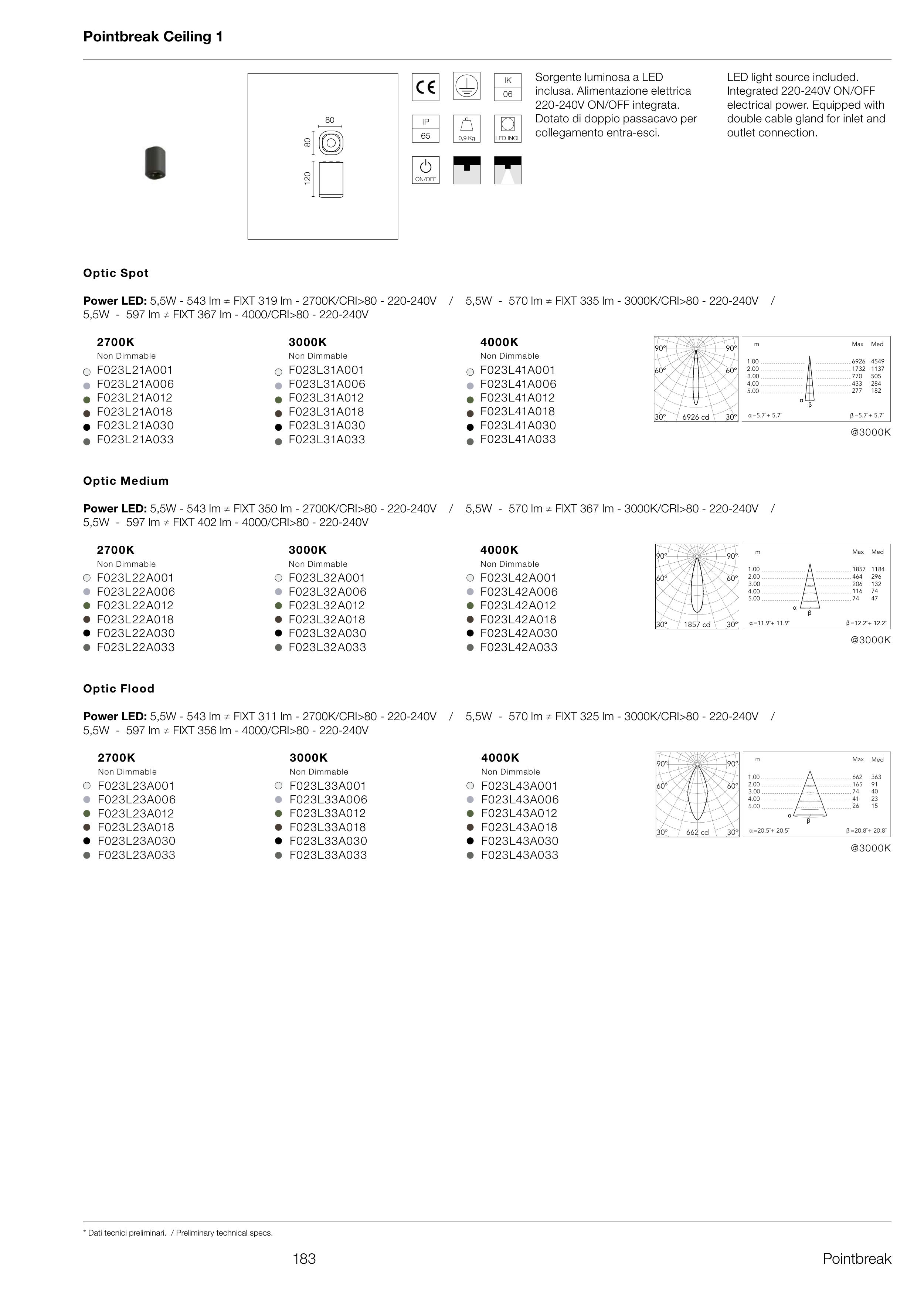 Power LED: 5,5W - 543 lm ≠ FIXT 319 lm - 2700K/CRI>80 - 220-240V / 5,5W - 570 lm ≠ FIXT 335 lm - 3000K/CRI>80 - 220-240V /