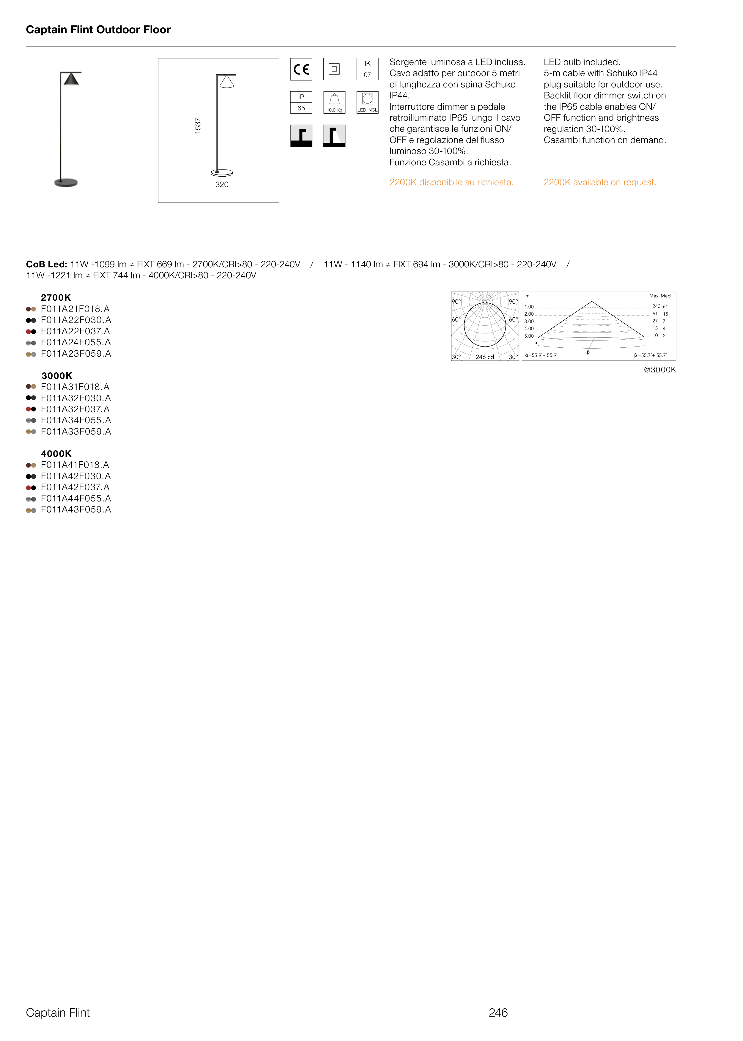 CoB Led: 11W -1099 lm ≠ FIXT 669 lm - 2700K/CRI>80 - 220-240V / 11W - 1140 lm ≠ FIXT 694 lm - 3000K/CRI>80 - 220-240V /