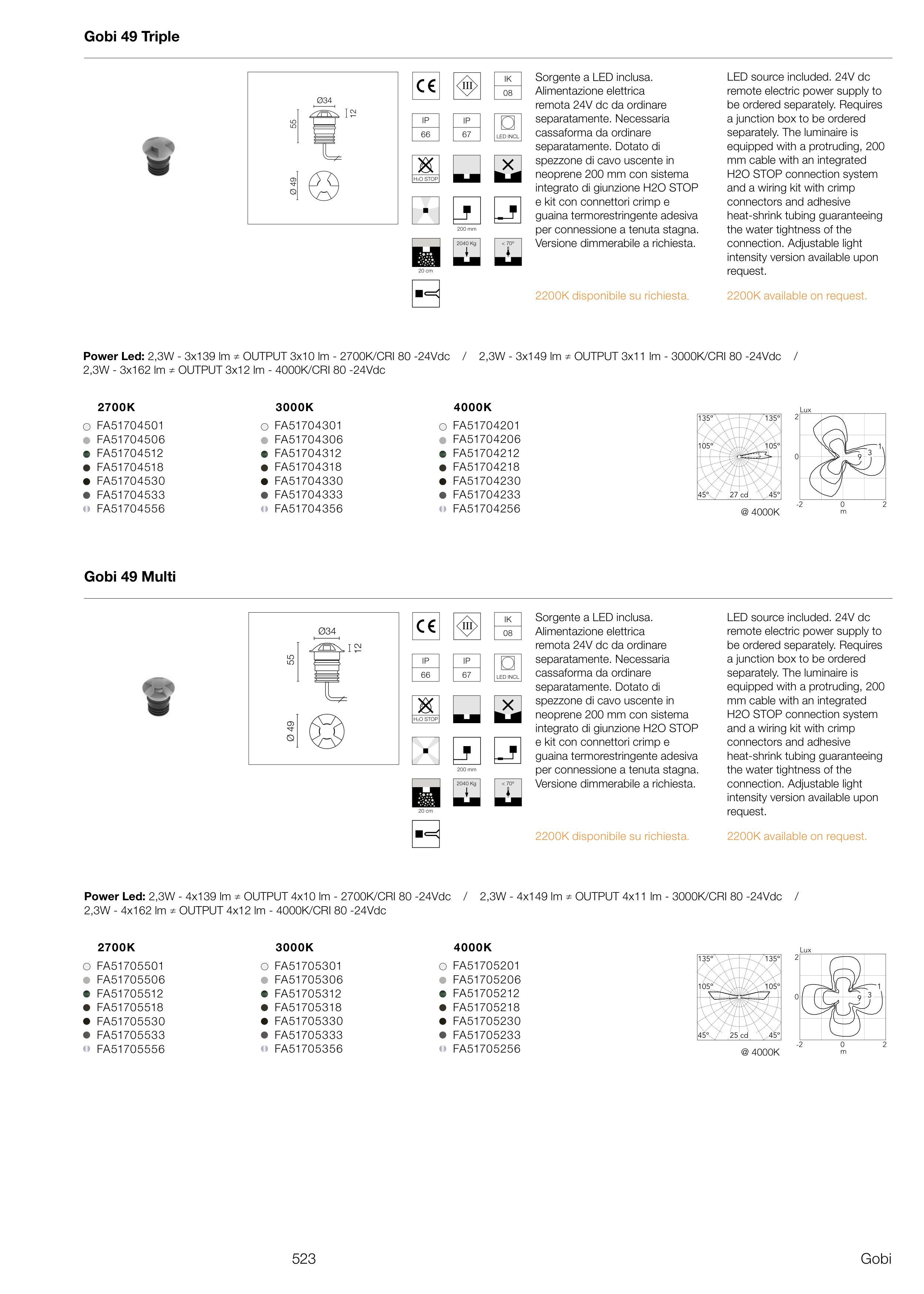 Power Led: 2,3W - 3x139 lm ≠ OUTPUT 3x10 lm - 2700K/CRI 80 -24Vdc / 2,3W - 3x149 lm ≠ OUTPUT 3x11 lm - 3000K/CRI 80 -24Vdc /