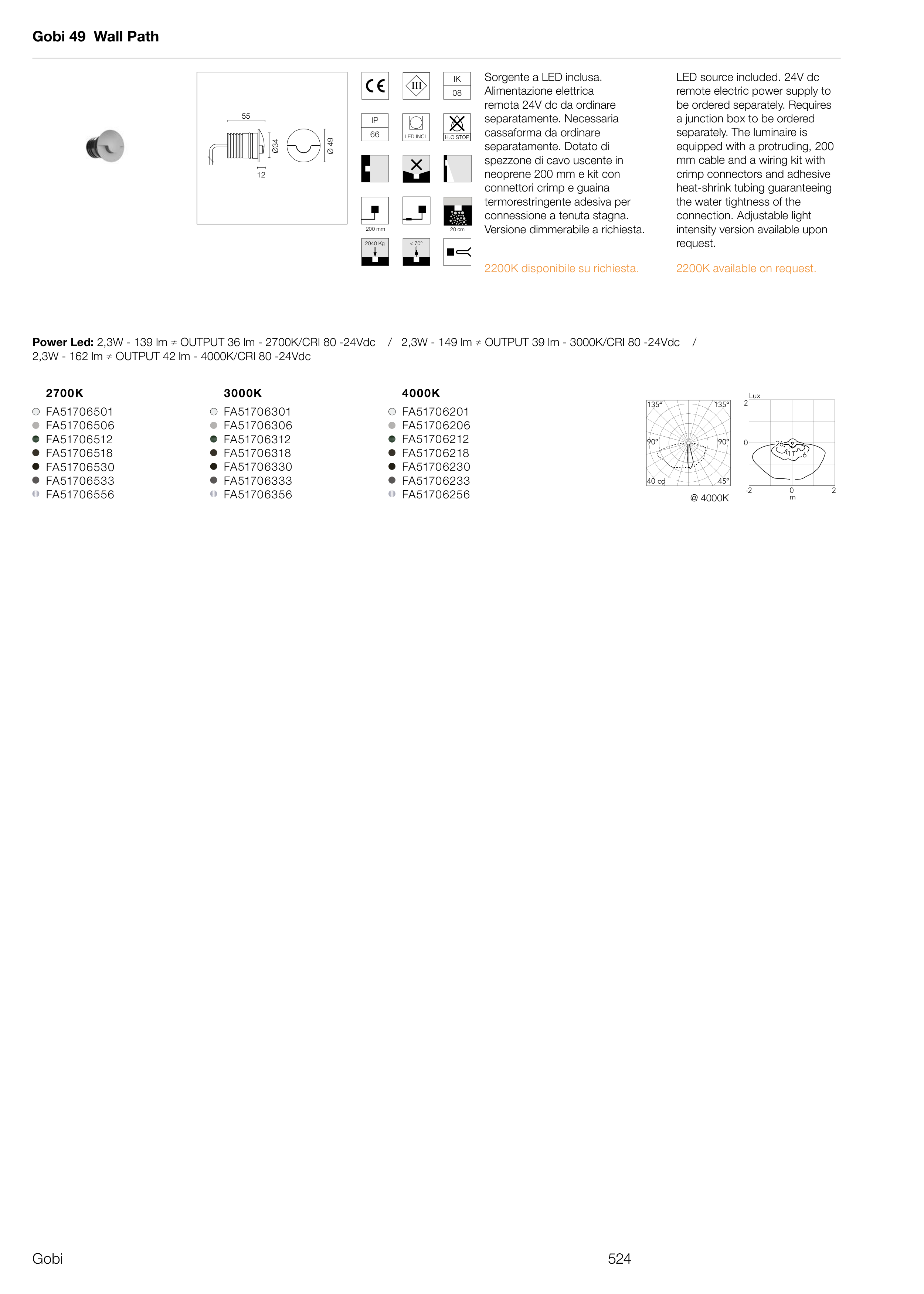 Power Led: 2,3W - 139 lm ≠ OUTPUT 36 lm - 2700K/CRI 80 -24Vdc / 2,3W - 149 lm ≠ OUTPUT 39 lm - 3000K/CRI 80 -24Vdc /