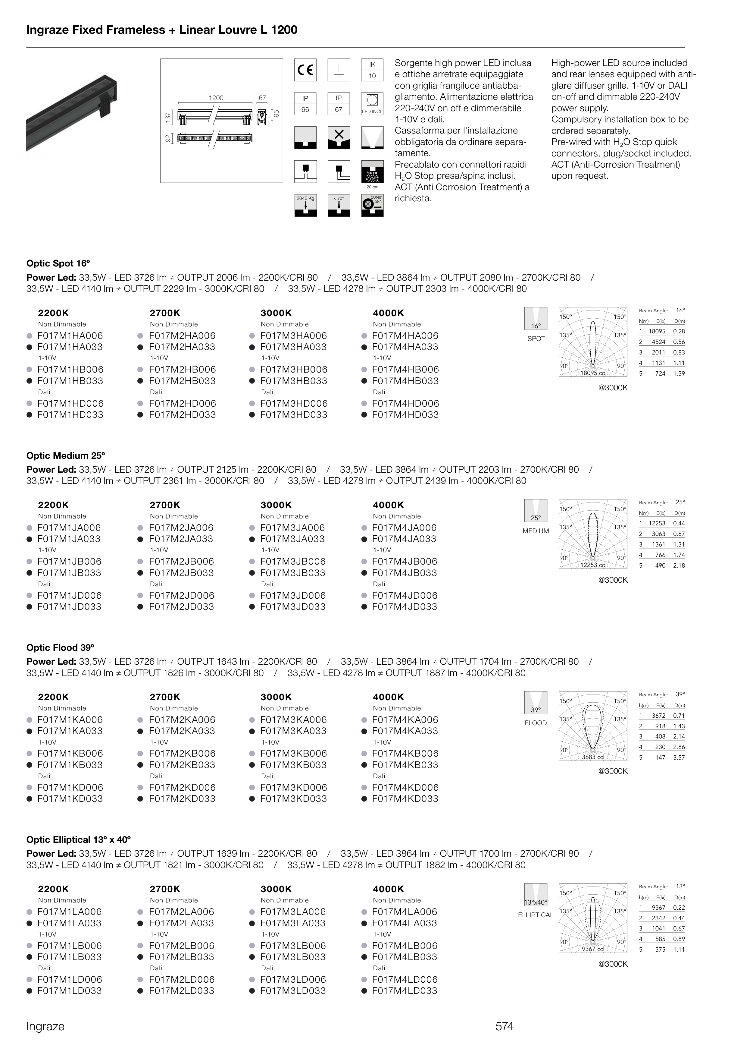 Power Led: 33,5W - LED 3726 lm ≠ OUTPUT 1639 lm - 2200K/CRI 80 / 33,5W - LED 3864 lm ≠ OUTPUT 1700 lm - 2700K/CRI 80 /