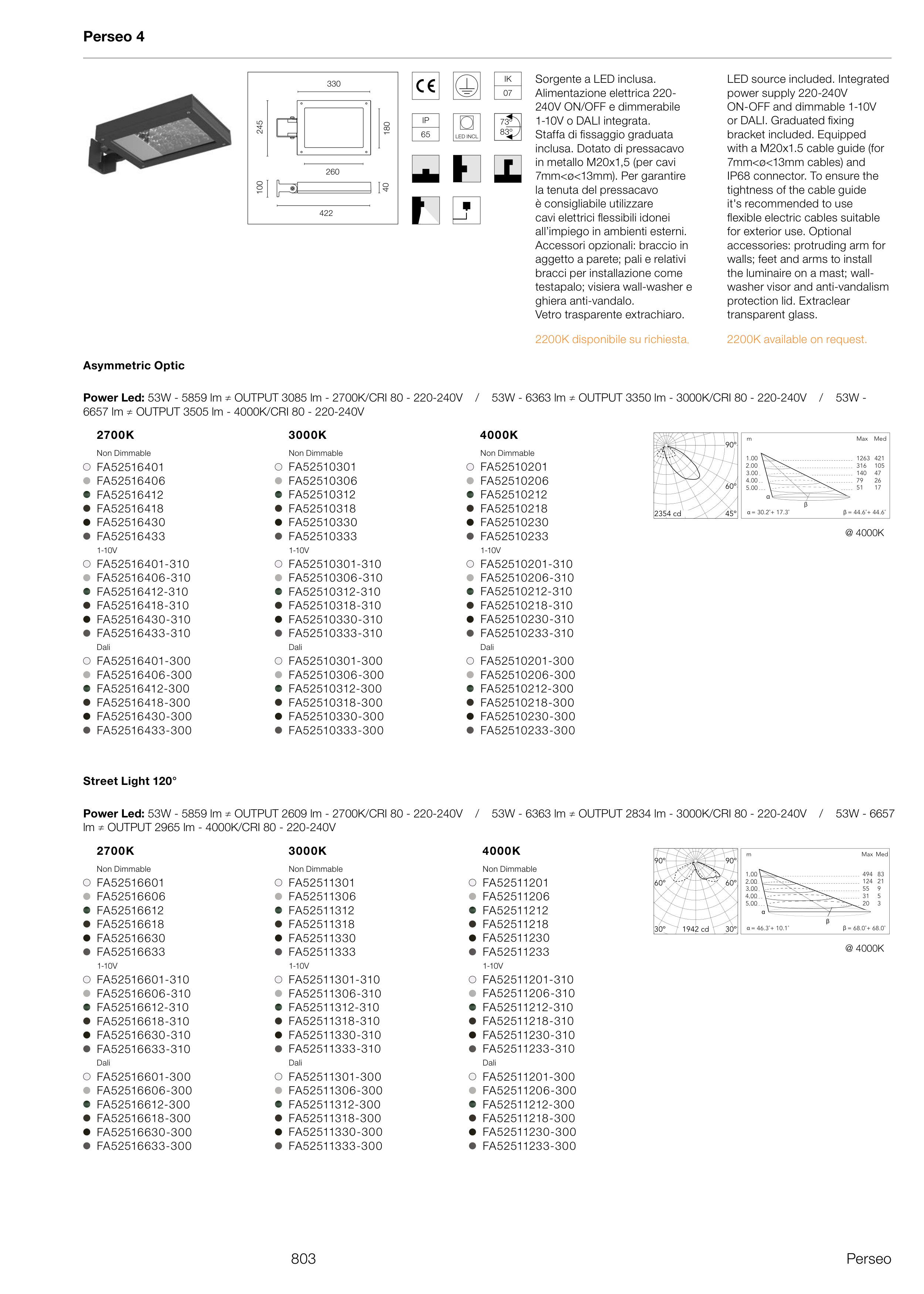 Power Led: 53W - 5859 lm ≠ OUTPUT 2609 lm - 2700K/CRI 80 - 220-240V / 53W - 6363 lm ≠ OUTPUT 2834 lm - 3000K/CRI 80 - 220-240V / 53W - 6657