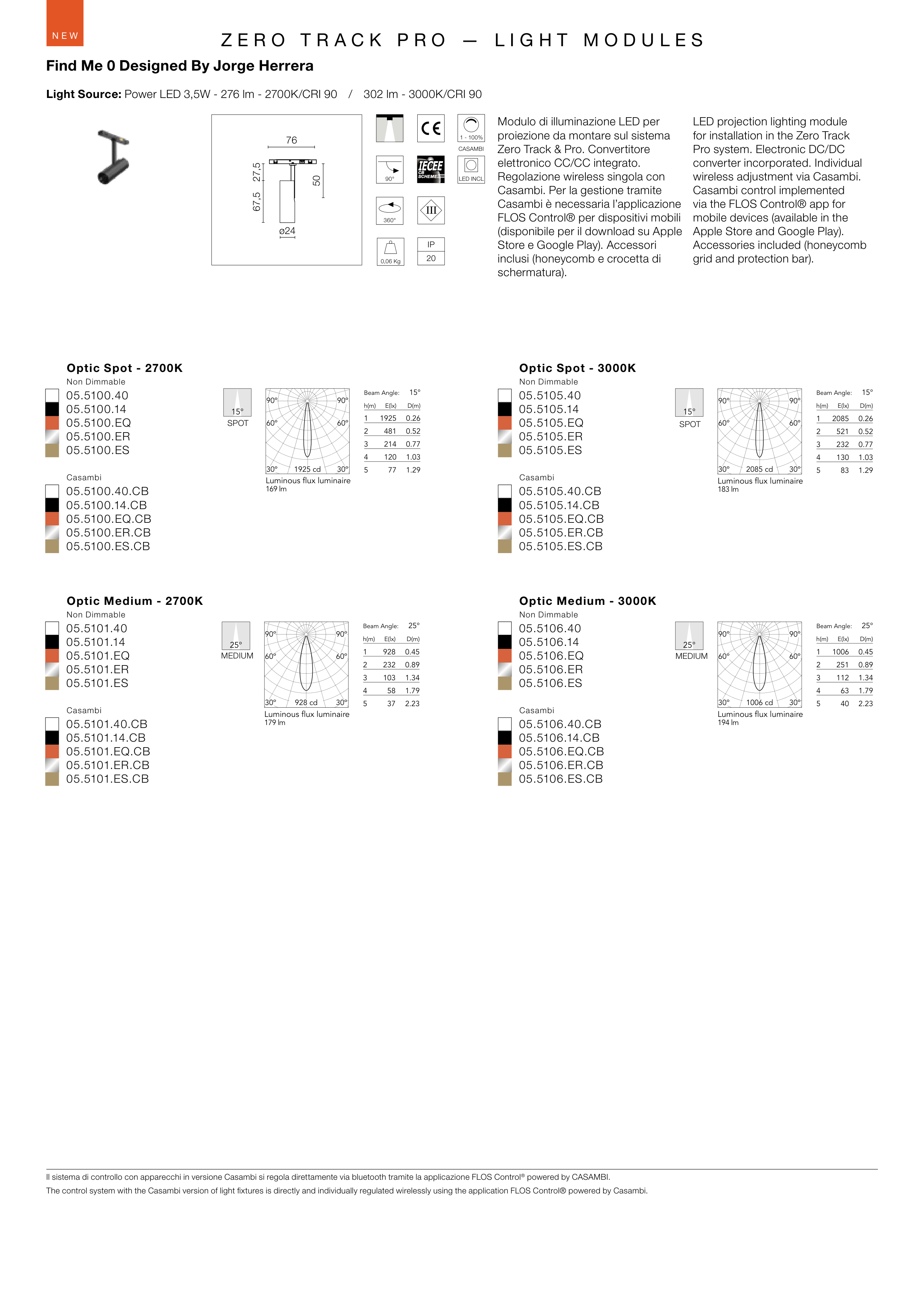 Light Source: Power LED 3,5W - 276 lm - 2700K/CRI 90 / 302 lm - 3000K/CRI 90