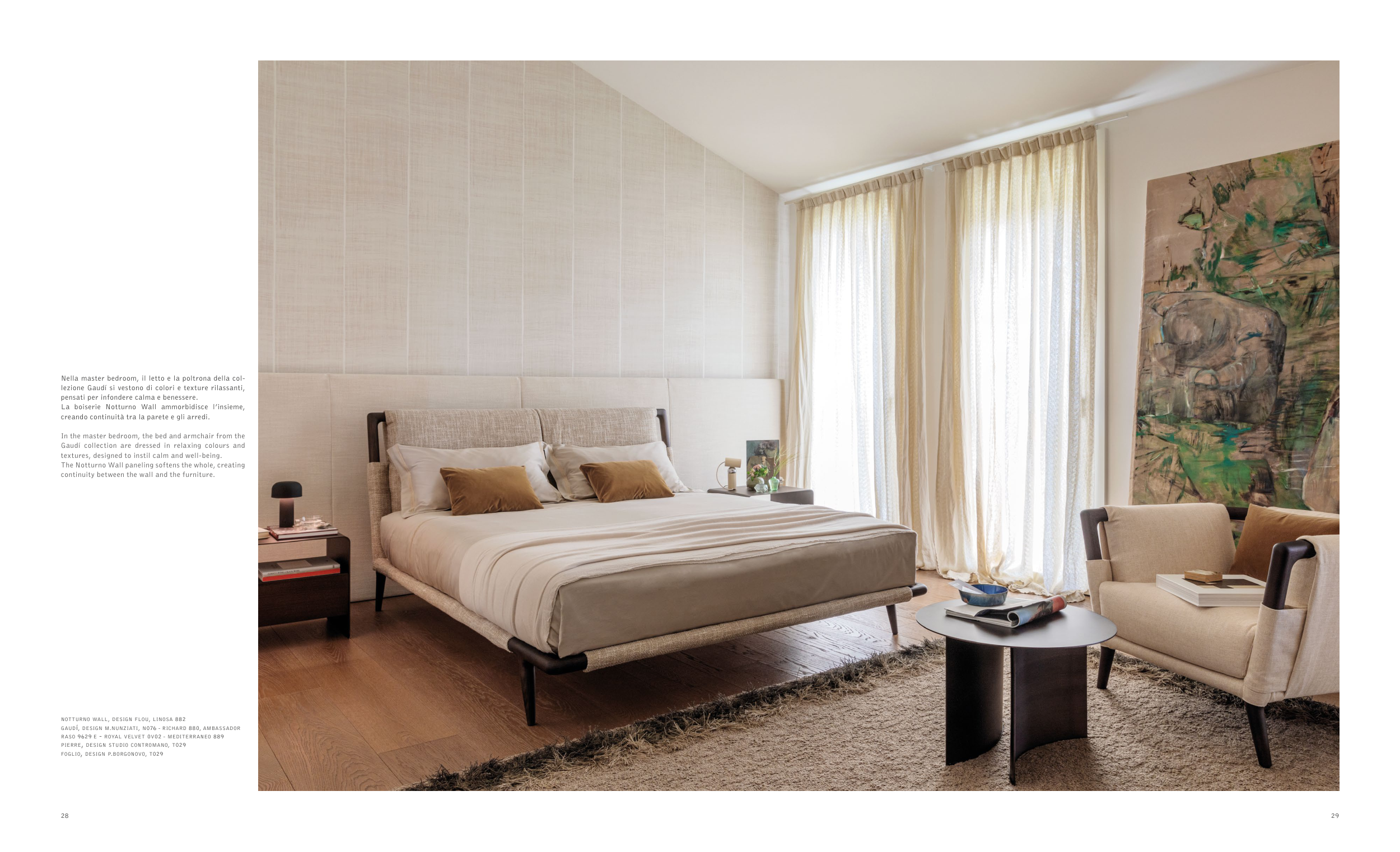 Nella master bedroom, il letto e la poltrona della col-