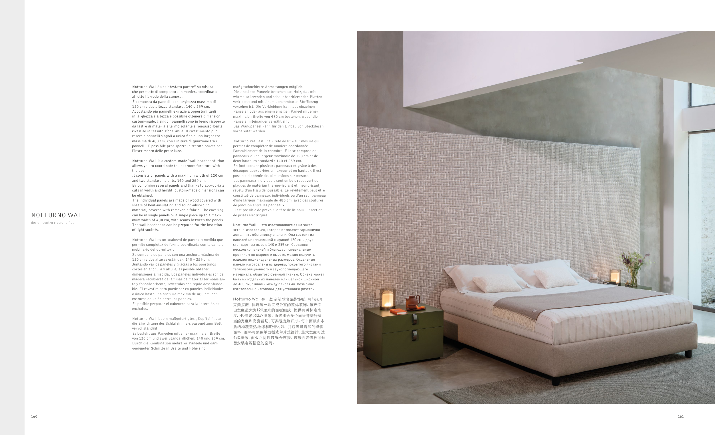Notturno Wall 是一款定制型墙面装饰板,可与床具