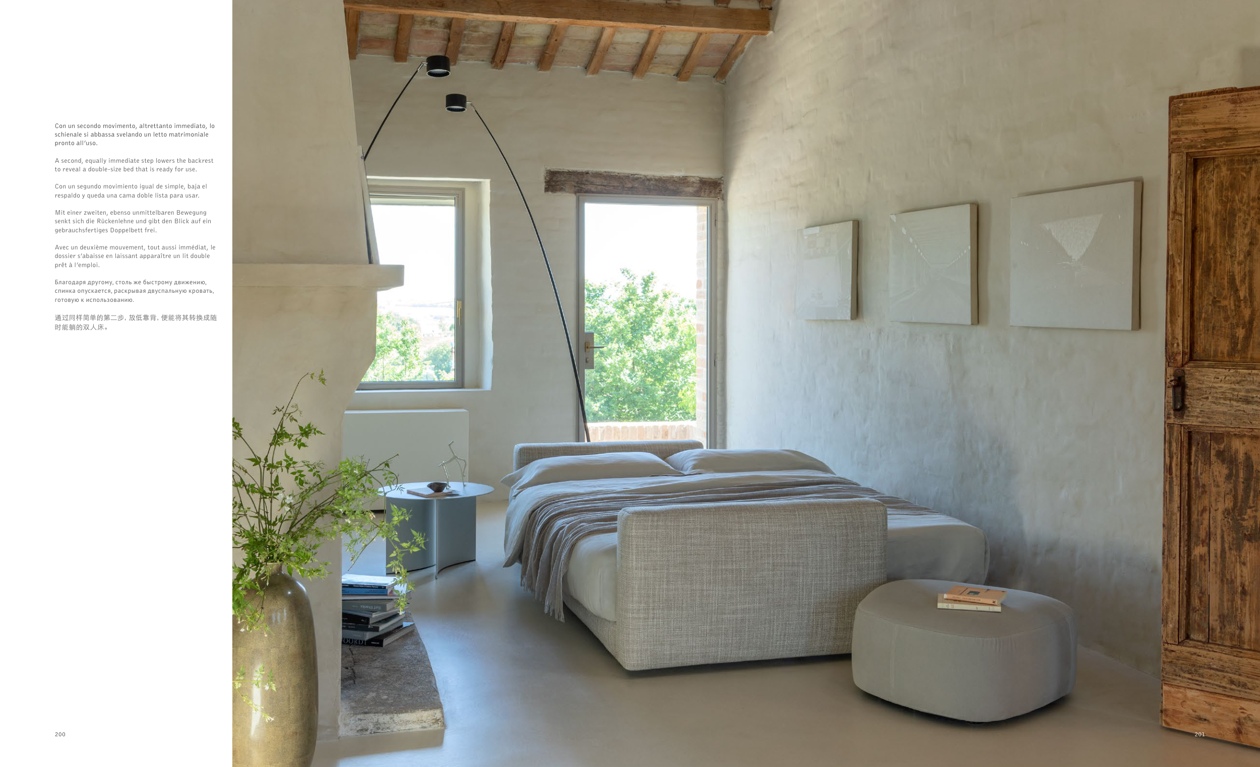 schienale si abbassa svelando un letto matrimoniale