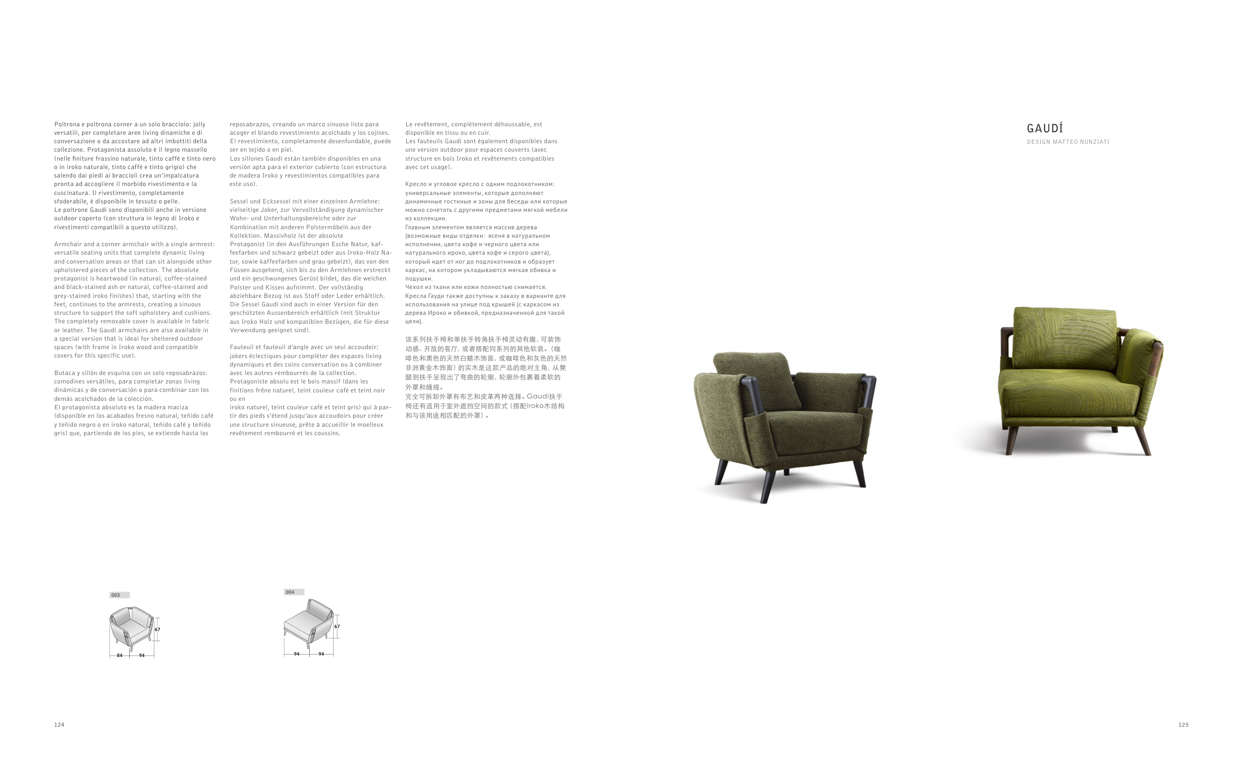 完全可拆卸外罩有布艺和皮革两种选择。Gaudí扶手