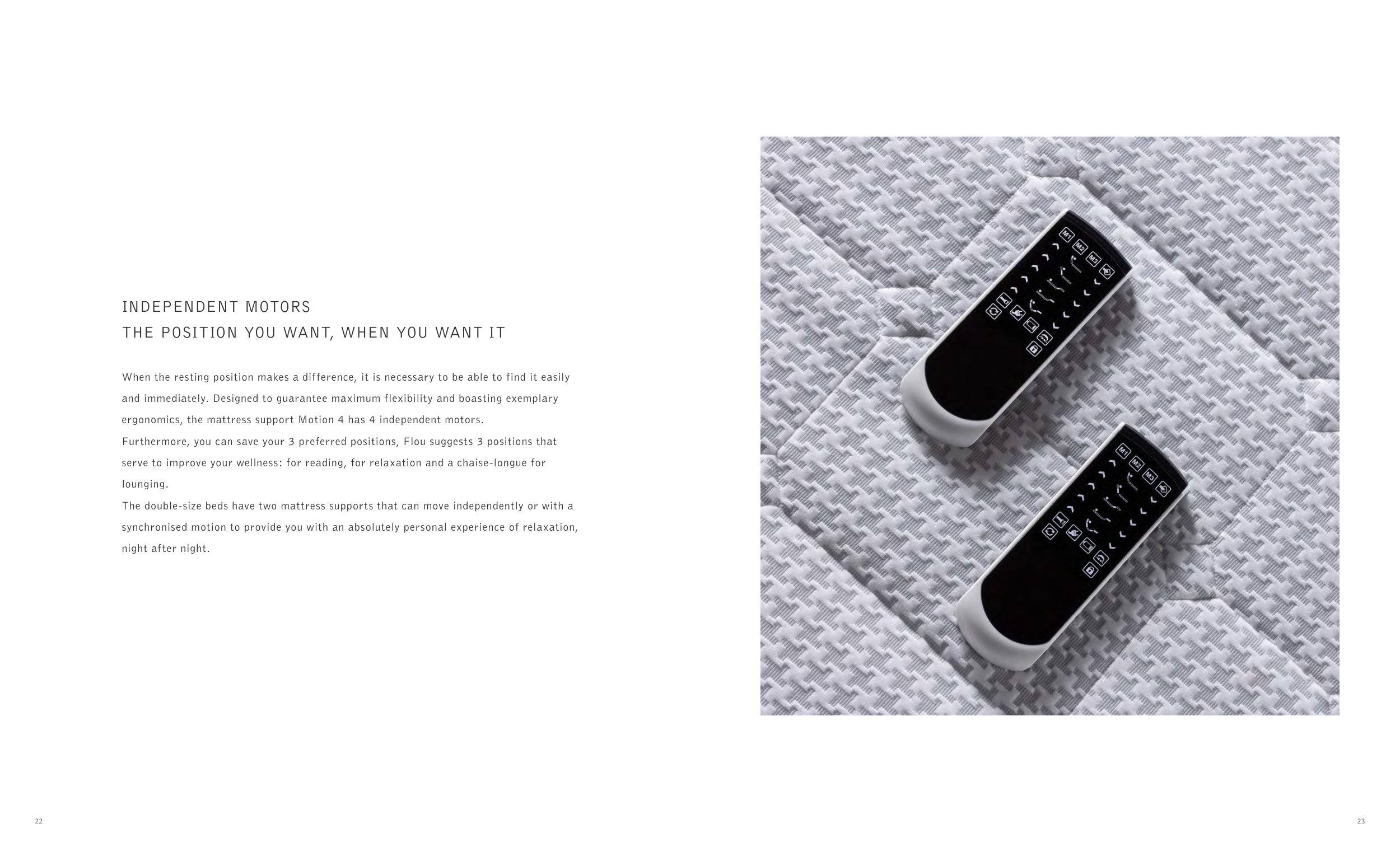 ergonomics, the mattress support Motion 4 has 4 independent motors.