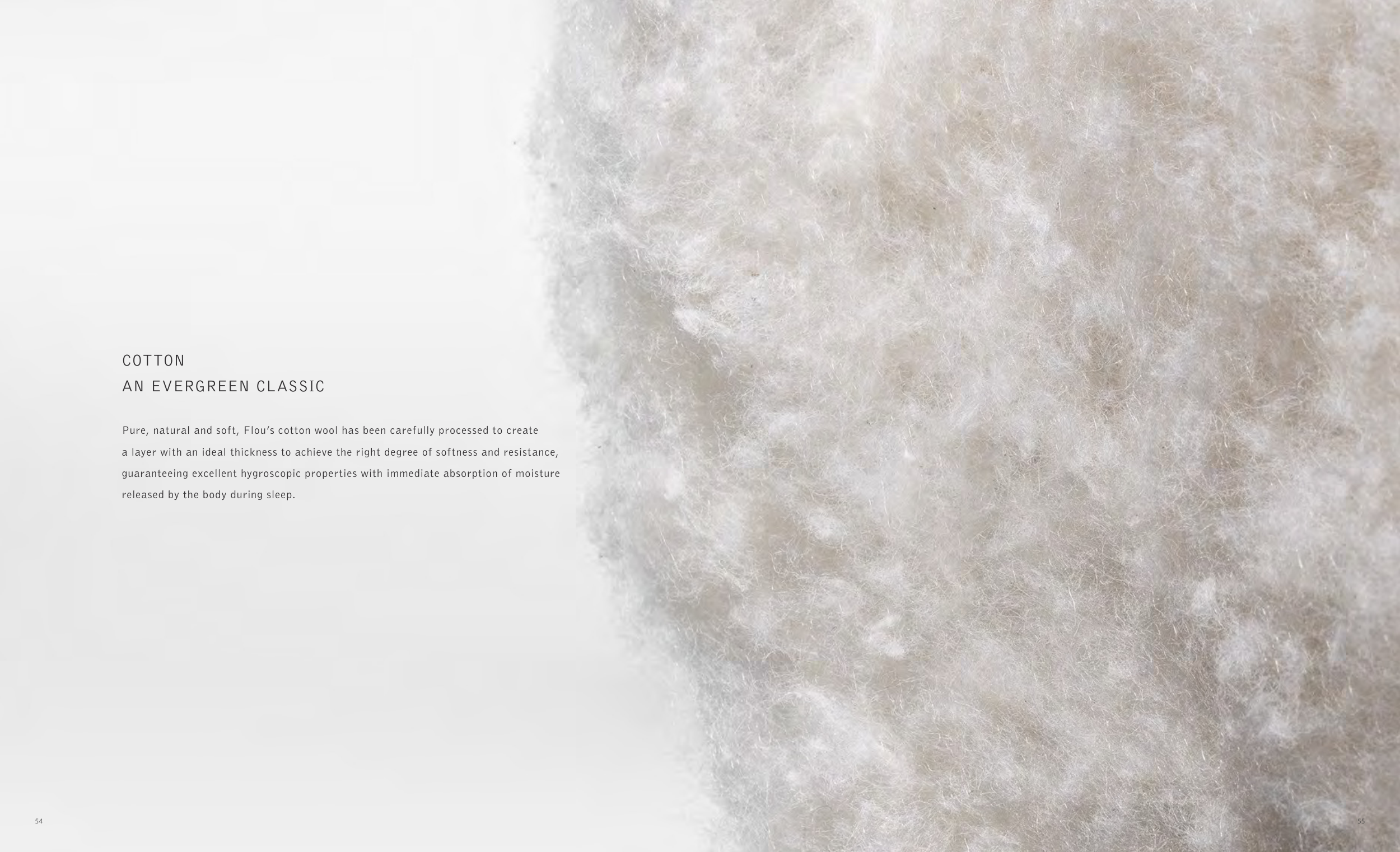 Pure, natural and soft, Flou’s cotton wool has been carefully processed to create