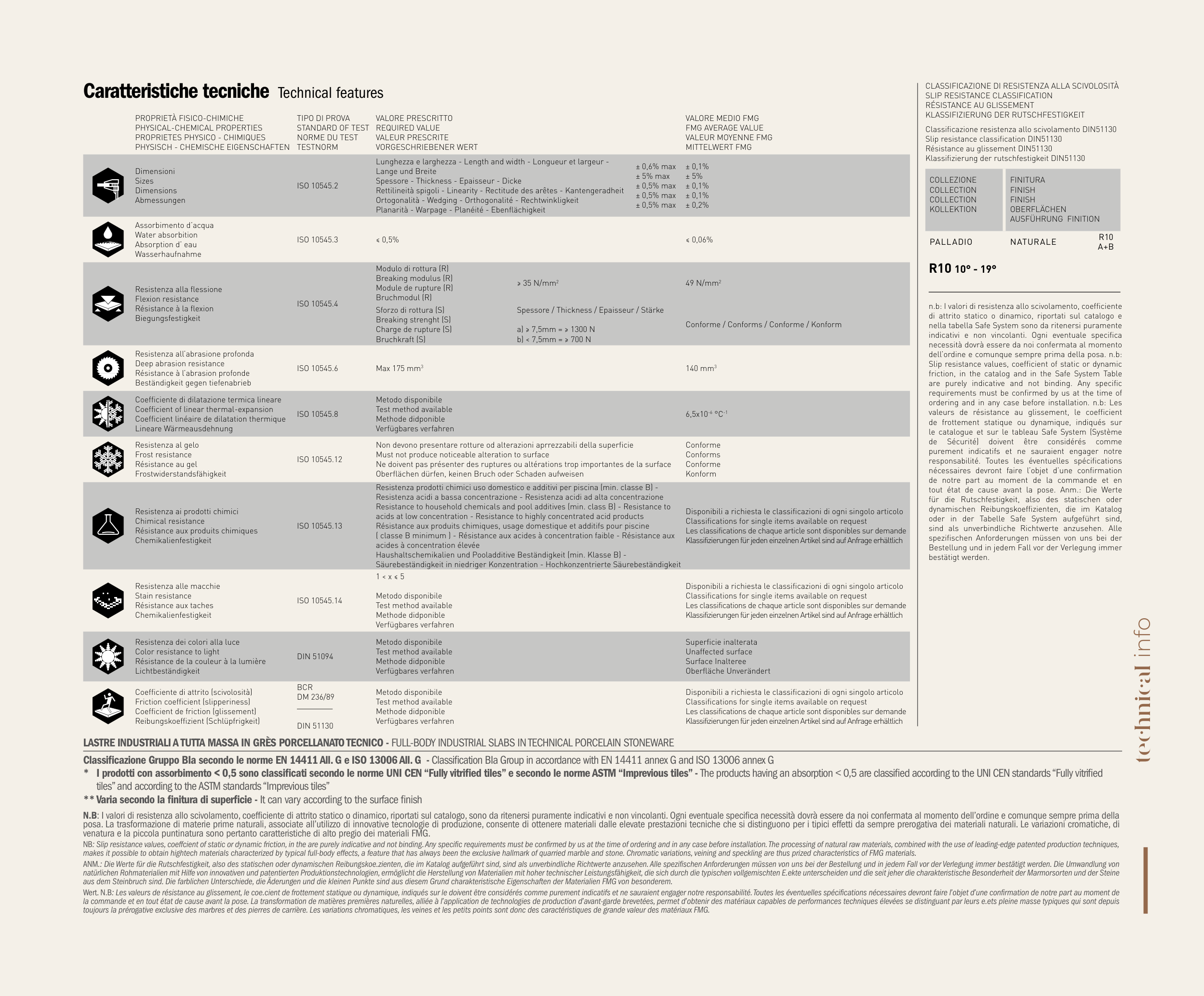 NB: Slip resistance values, coeffcient of static or dynamic friction, in the are purely indicative and not binding. Any specific requirements must be confirmed by us at the time of ordering and in any case before installation. The processing of natural raw materials, combined with the use of leading-edge patented production techniques,
