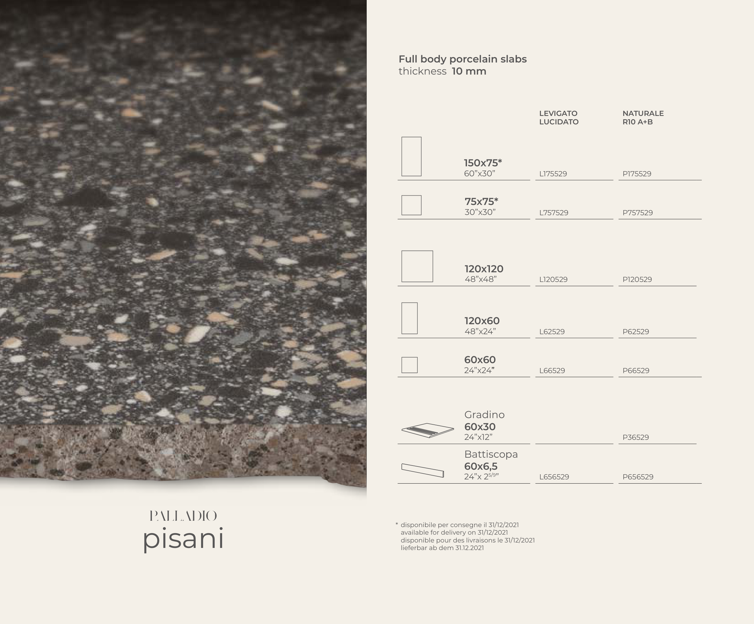* disponibile per consegne il 31/12/2021