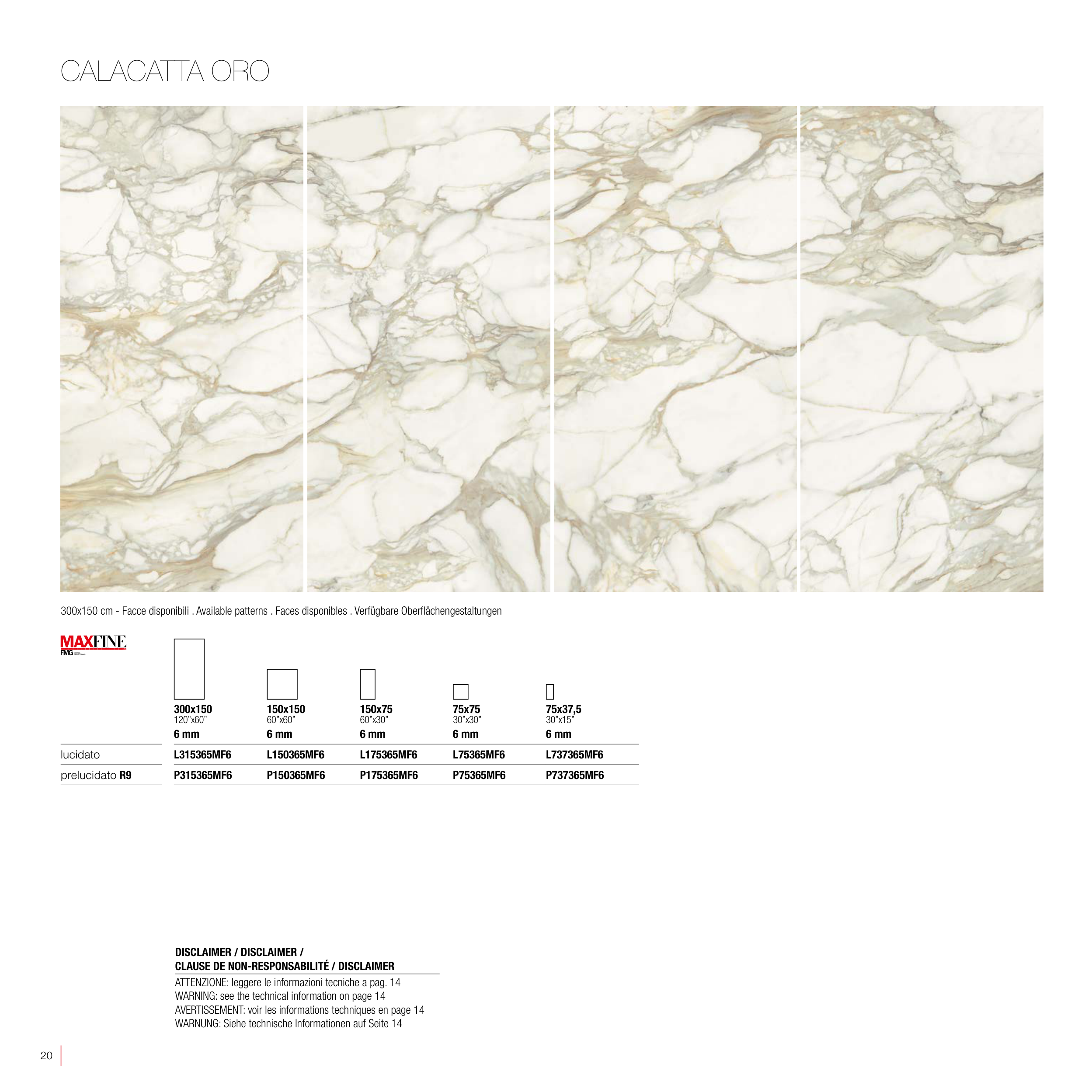 300x150 cm - Facce disponibili . Available patterns . Faces disponibles . Verfügbare Oberflächengestaltungen