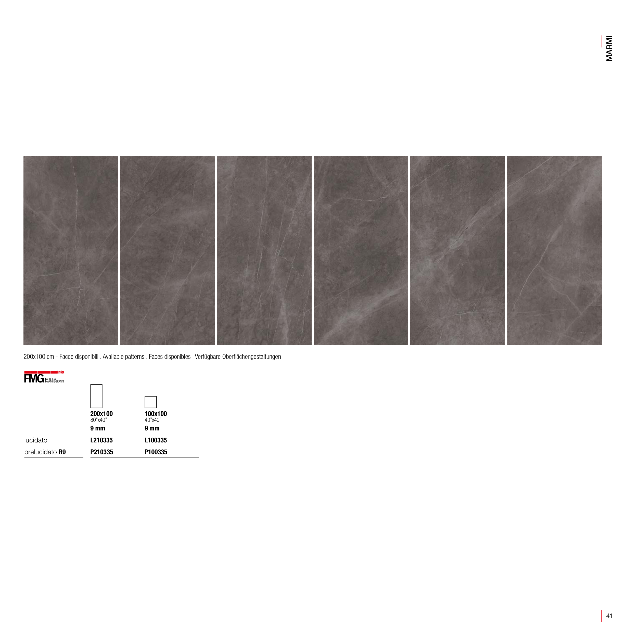 200x100 cm - Facce disponibili . Available patterns . Faces disponibles . Verfügbare Oberflächengestaltungen