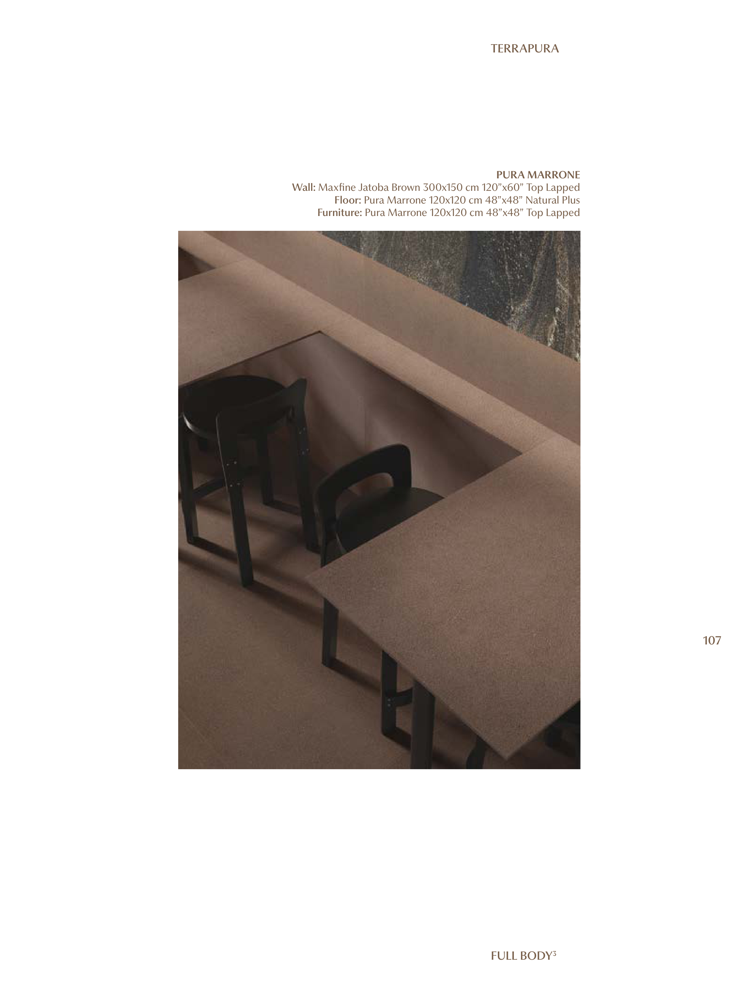 Floor: Pura Marrone 120x120 cm 48”x48” Natural Plus