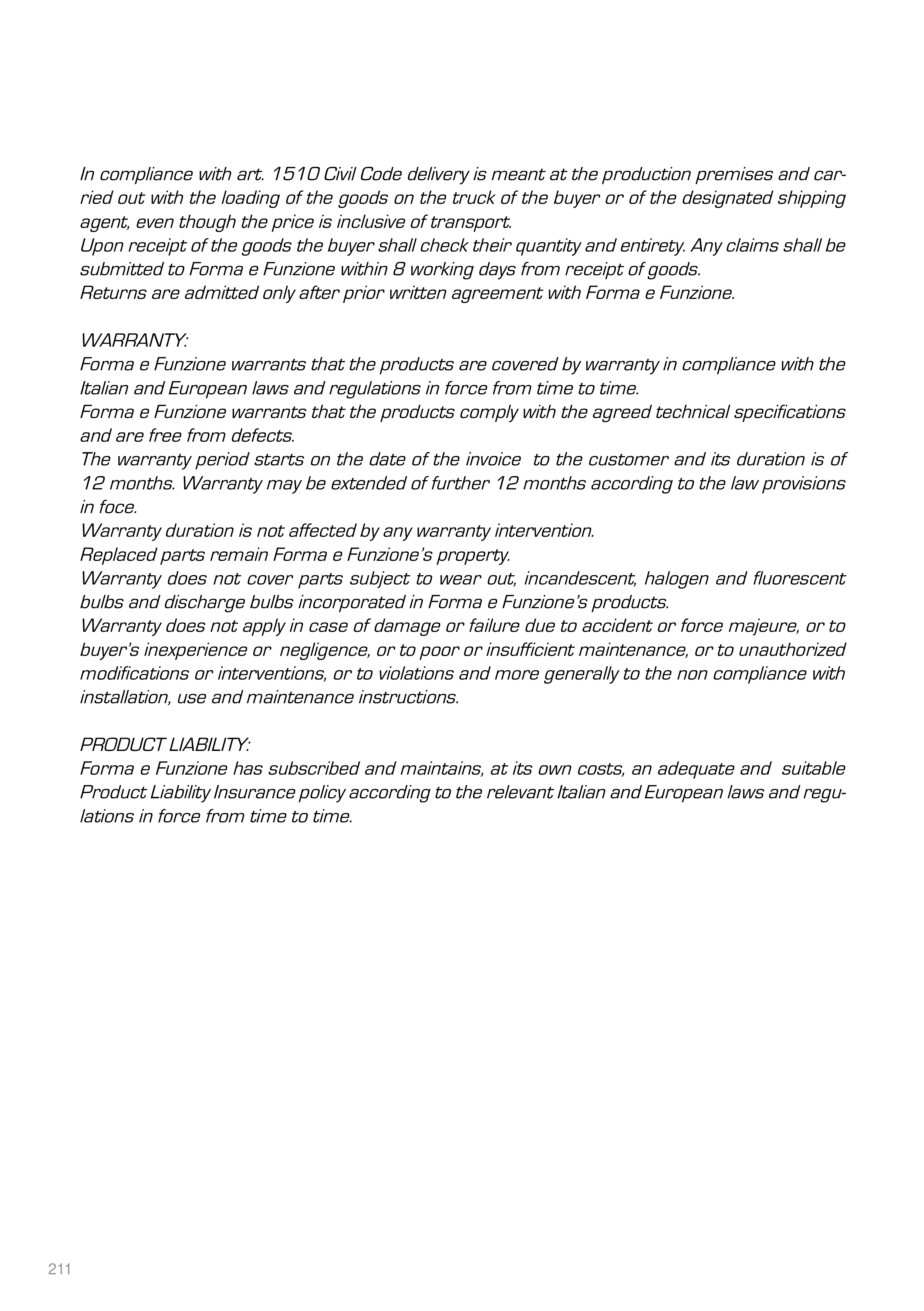 Forma e Funzione Italy Lead time 60 days