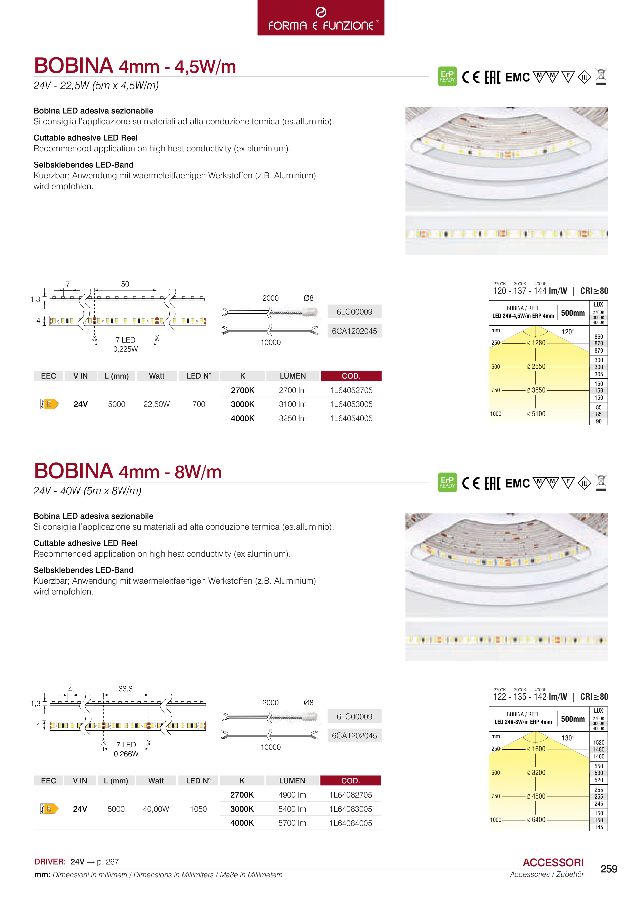 mm: Dimensioni in millimetri / Dimensions in Millimiters / Maße in Millimetern