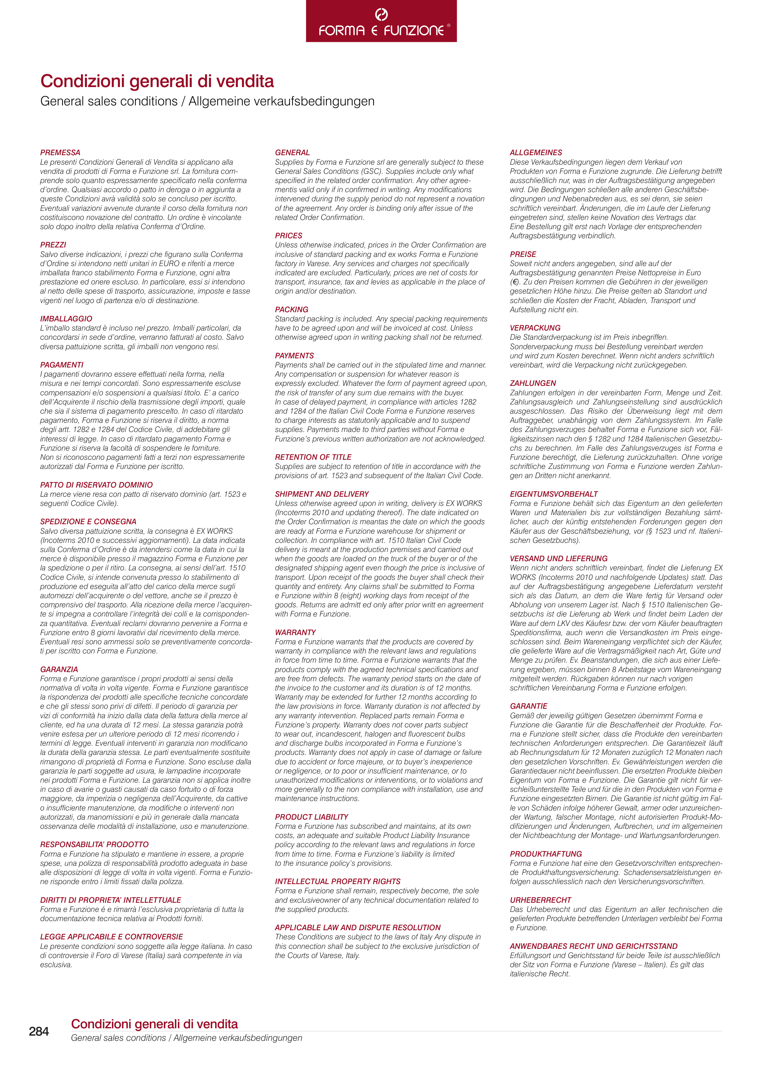Supplies by Forma e Funzione srl are generally subject to these
