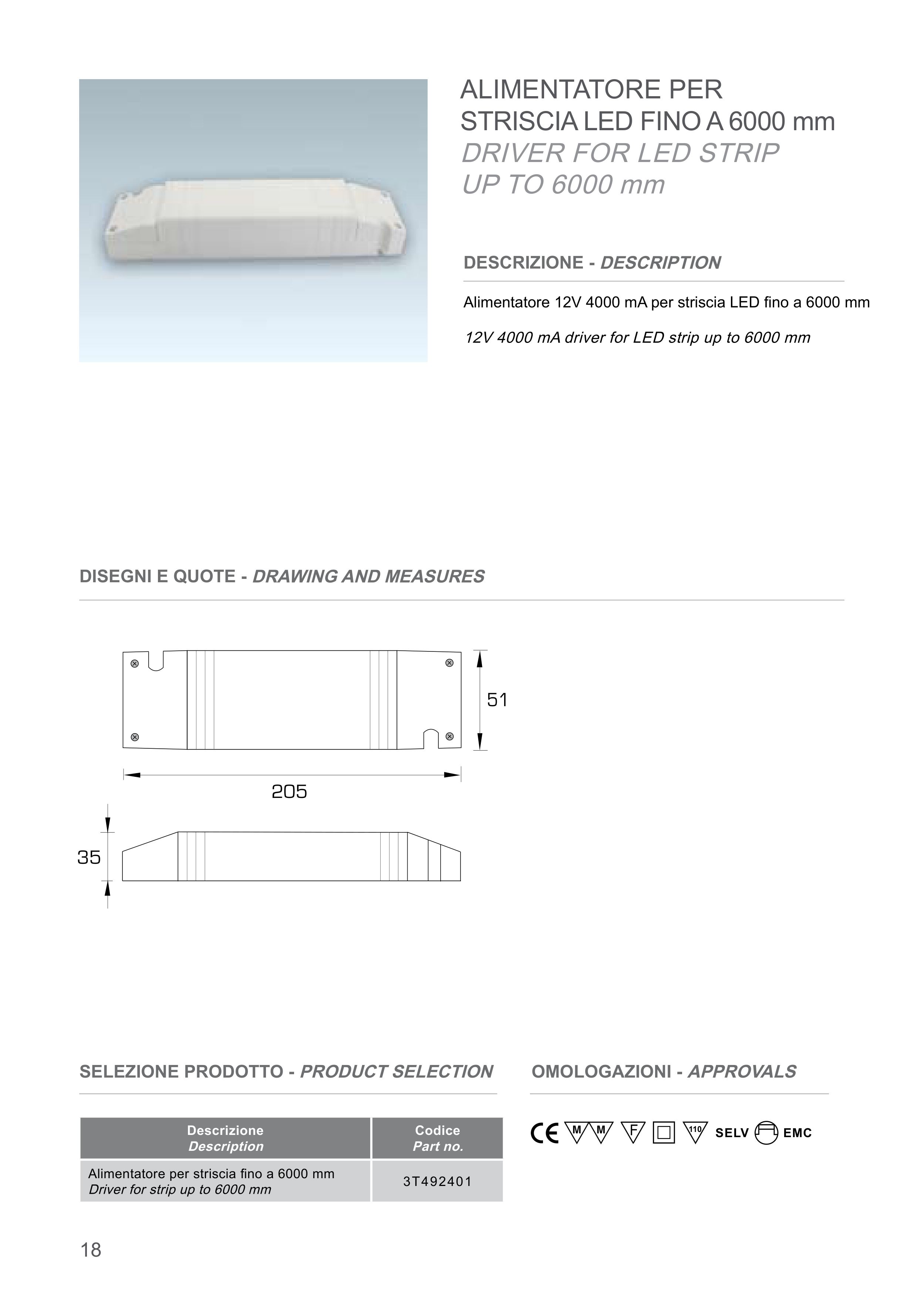 12V 4000 mA driver for LED strip up to 6000 mm