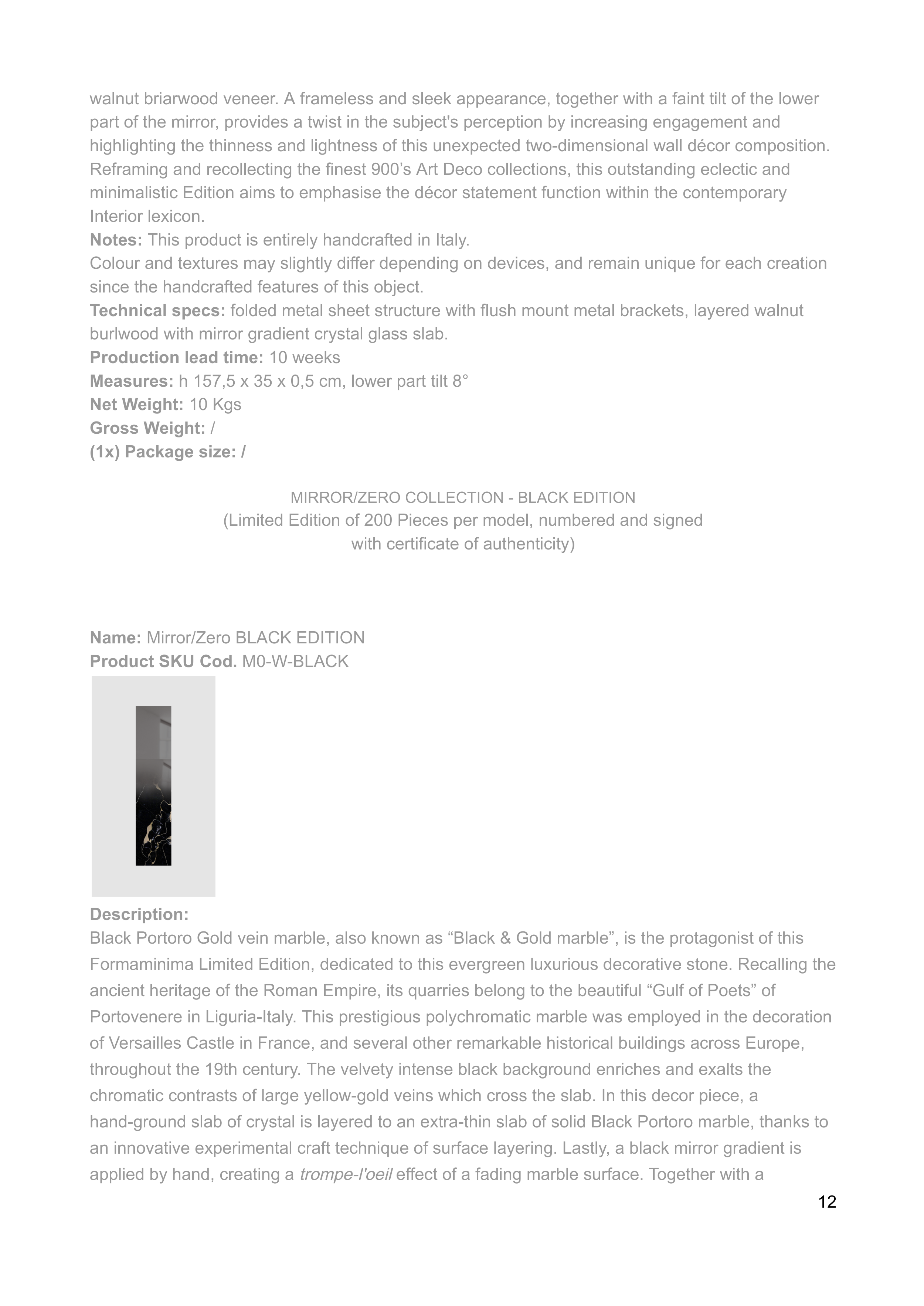 Notes: This product is entirely handcrafted in Italy.