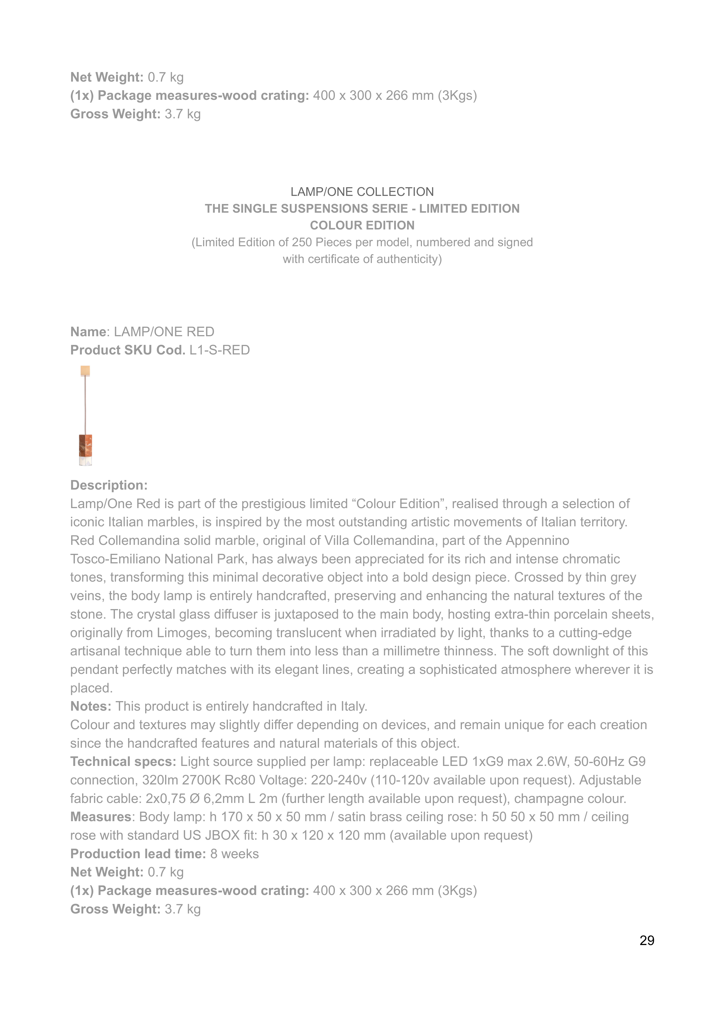 Notes: This product is entirely handcrafted in Italy.