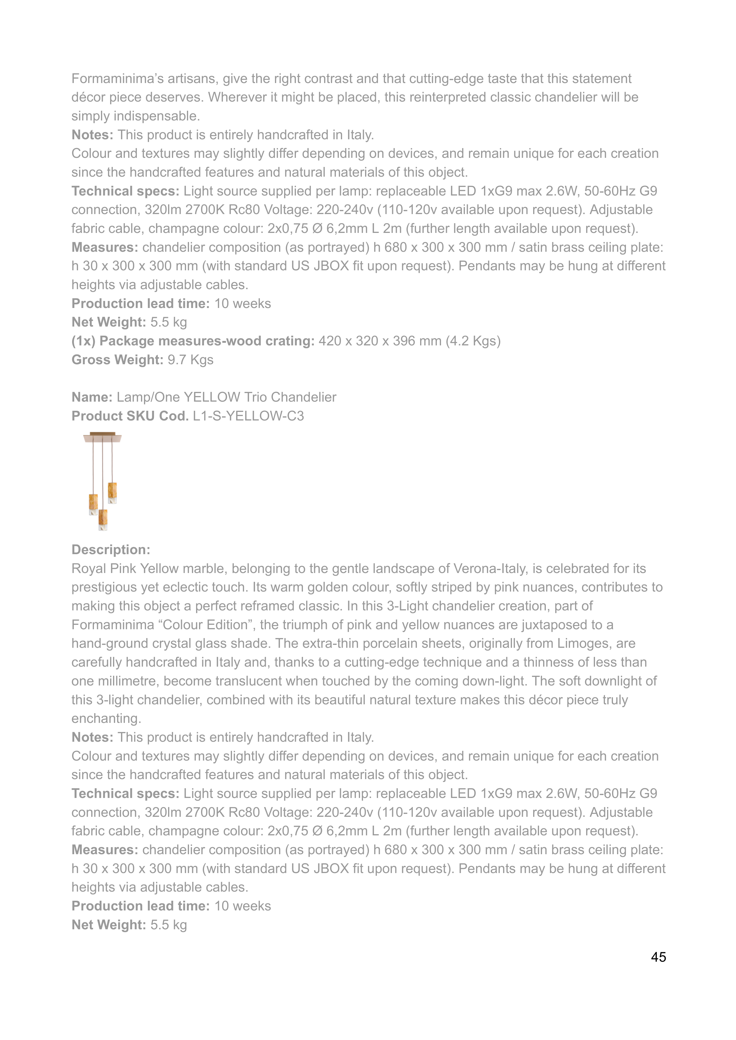 Notes: This product is entirely handcrafted in Italy.