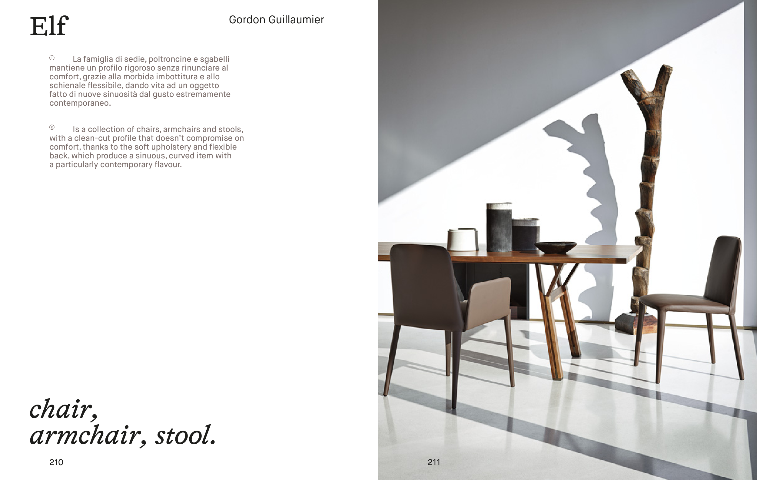 E Is a collection of chairs, armchairs and stools,