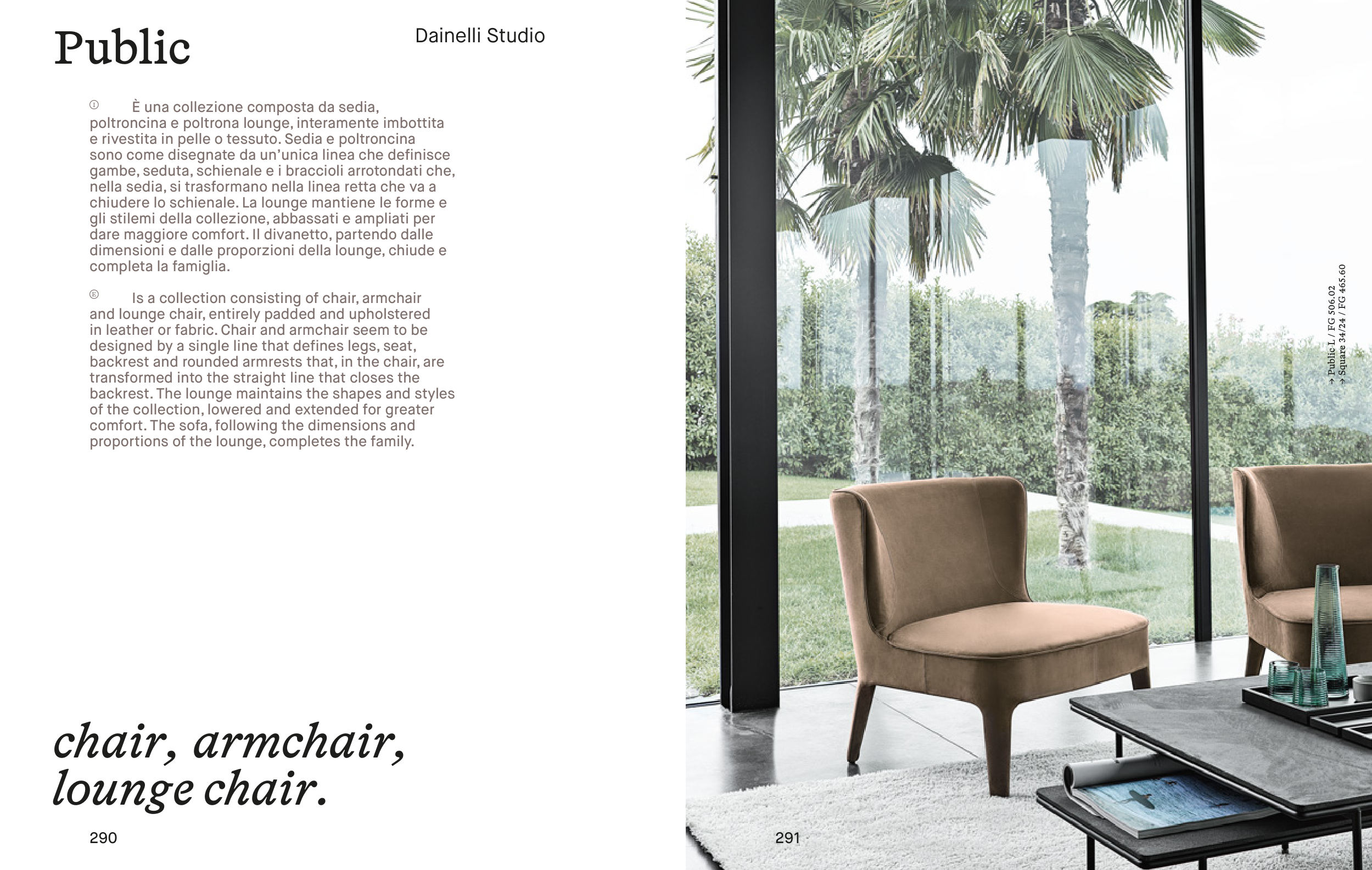 in leather or fabric. Chair and armchair seem to be