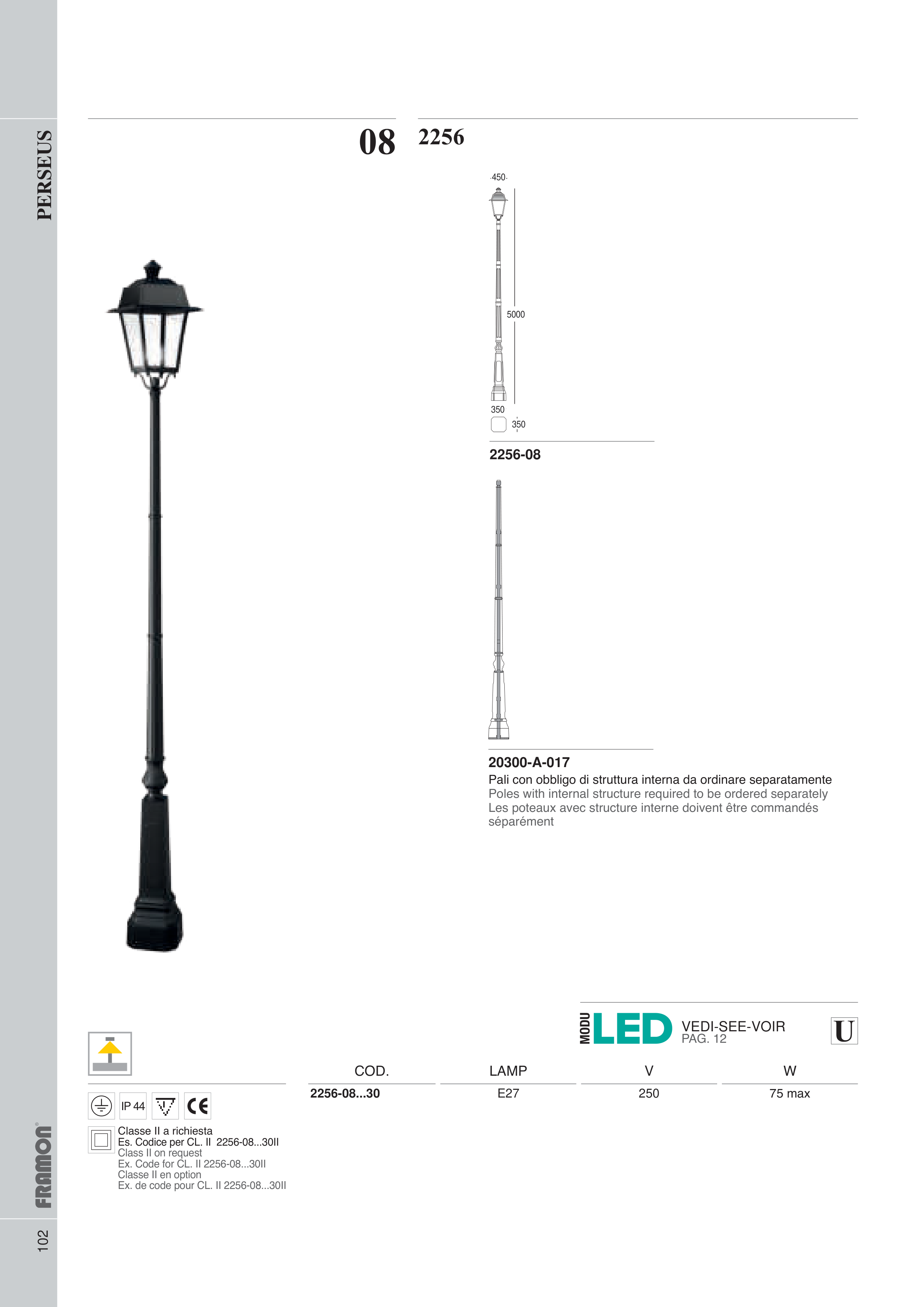 Pali con obbligo di struttura interna da ordinare separatamente