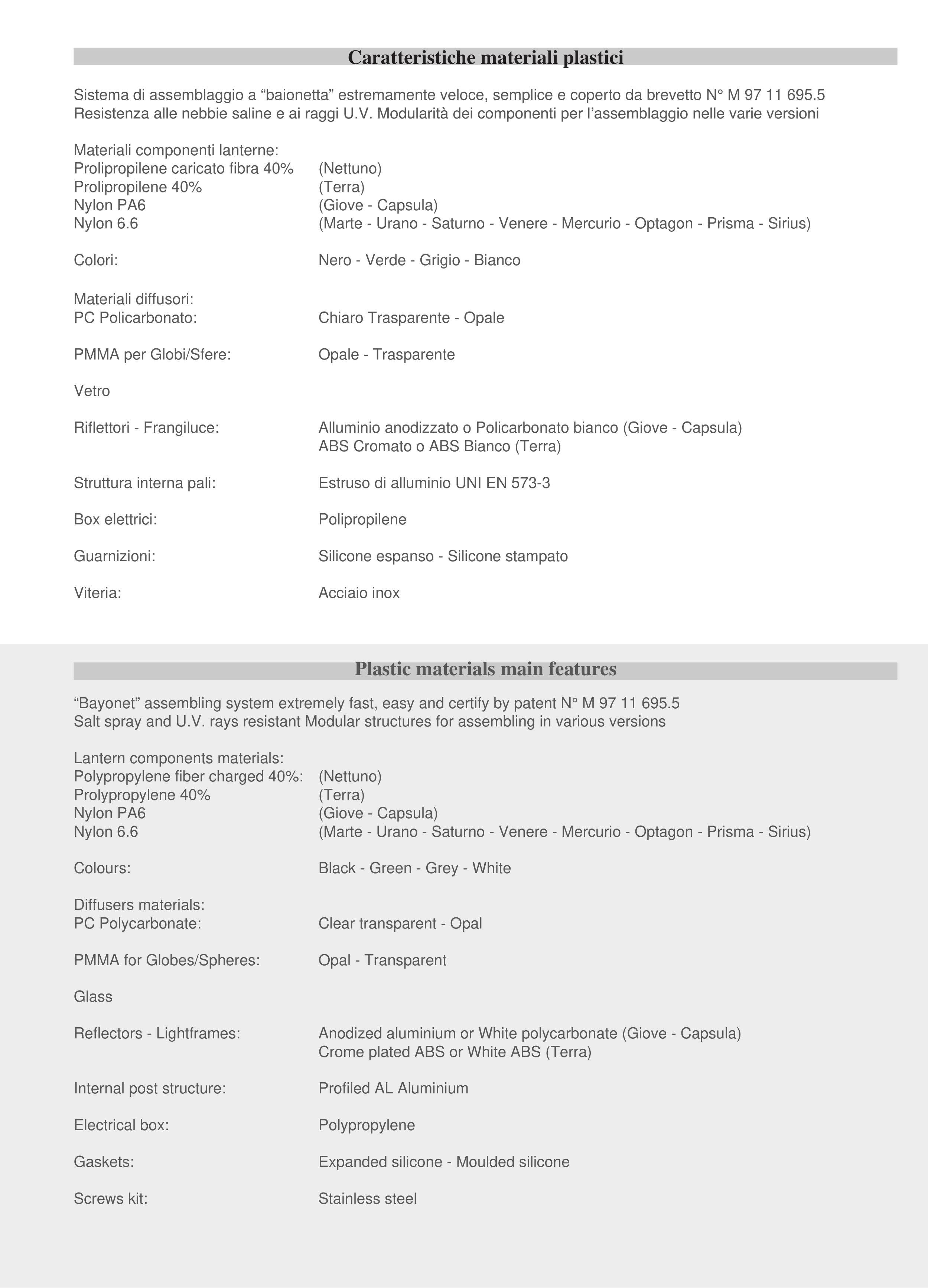 Resistenza alle nebbie saline e ai raggi U.V. Modularità dei componenti per l’assemblaggio nelle varie versioni