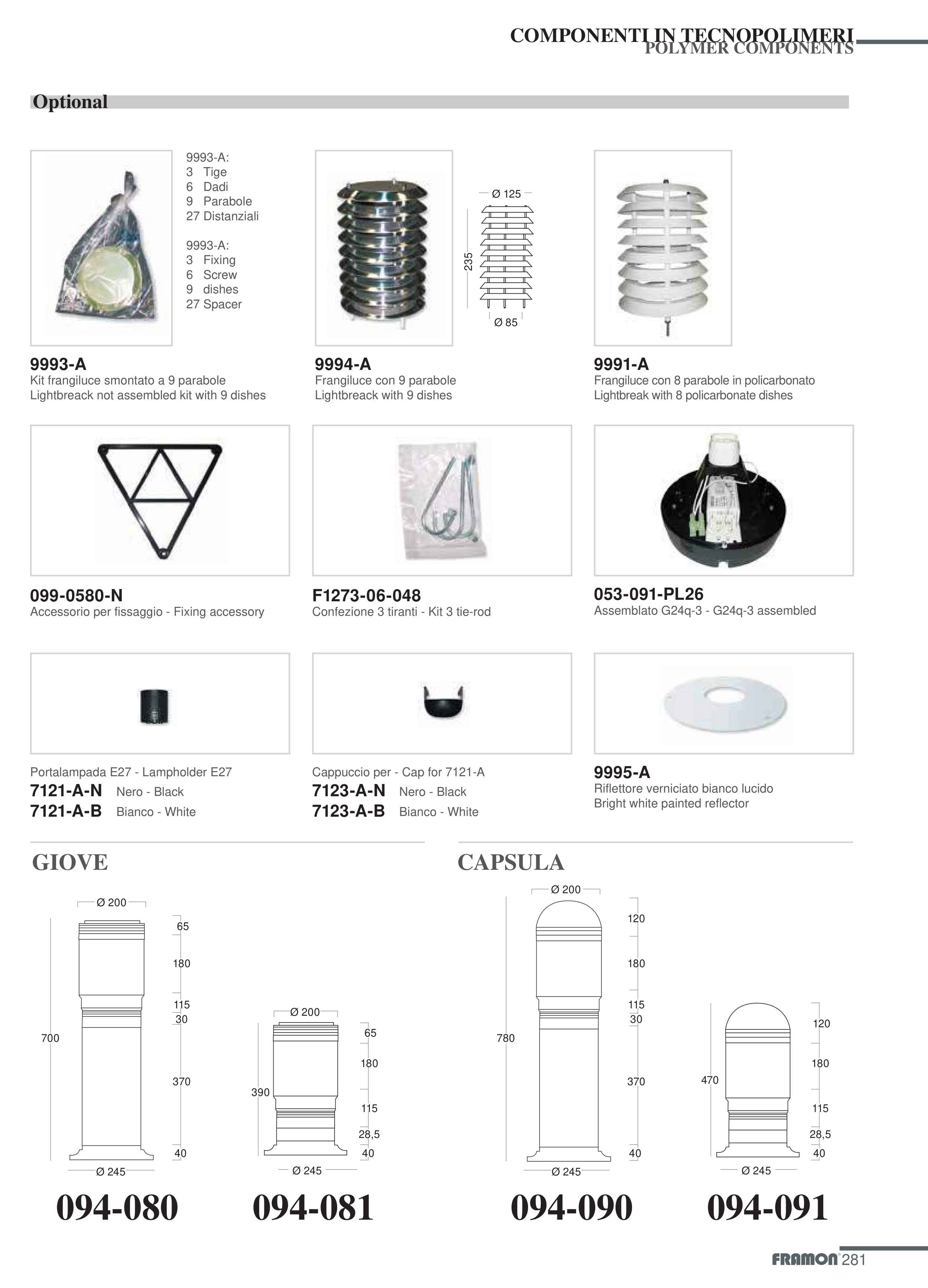 Frangiluce con 8 parabole in policarbonato