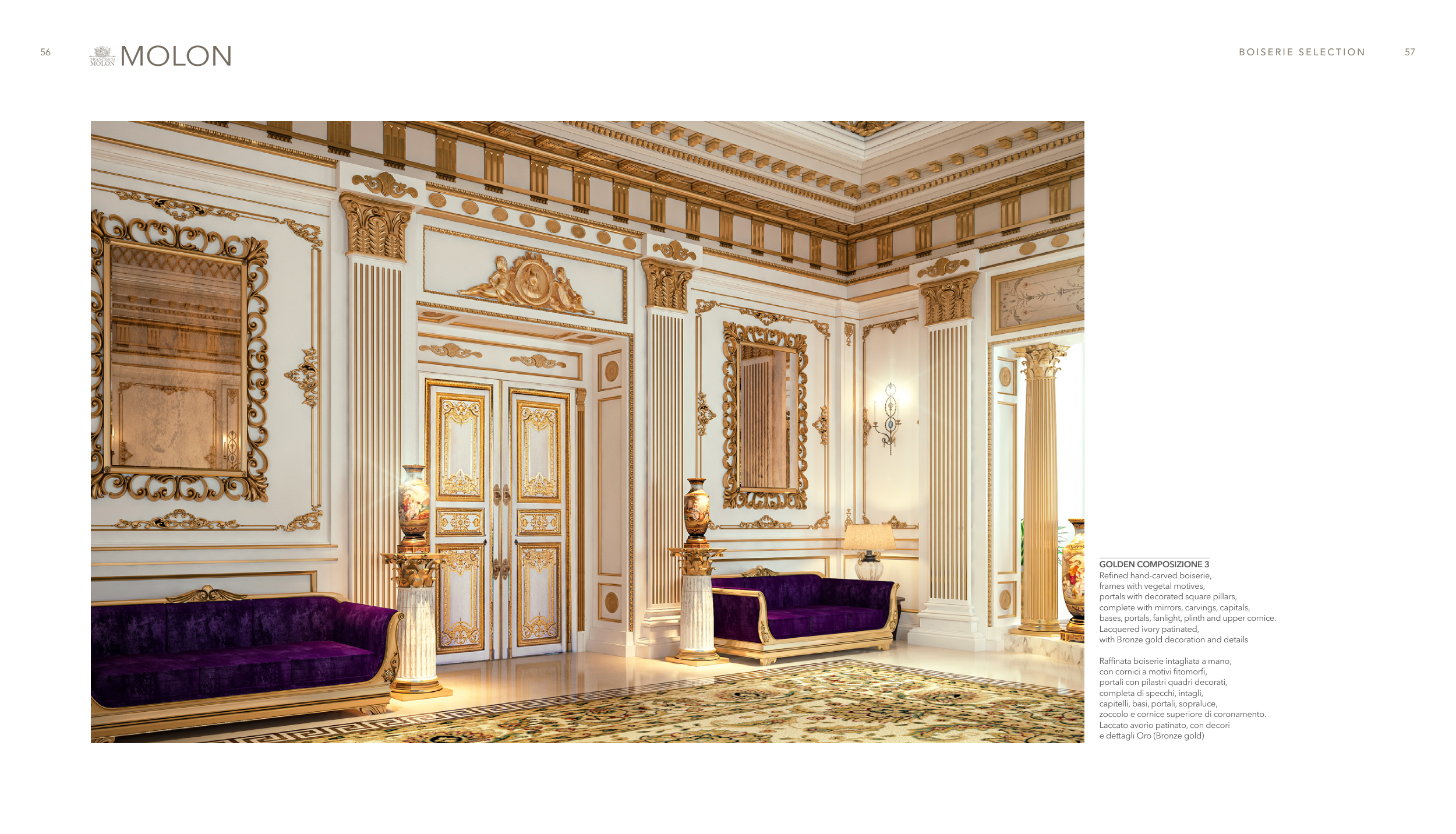Refined hand-carved boiserie,