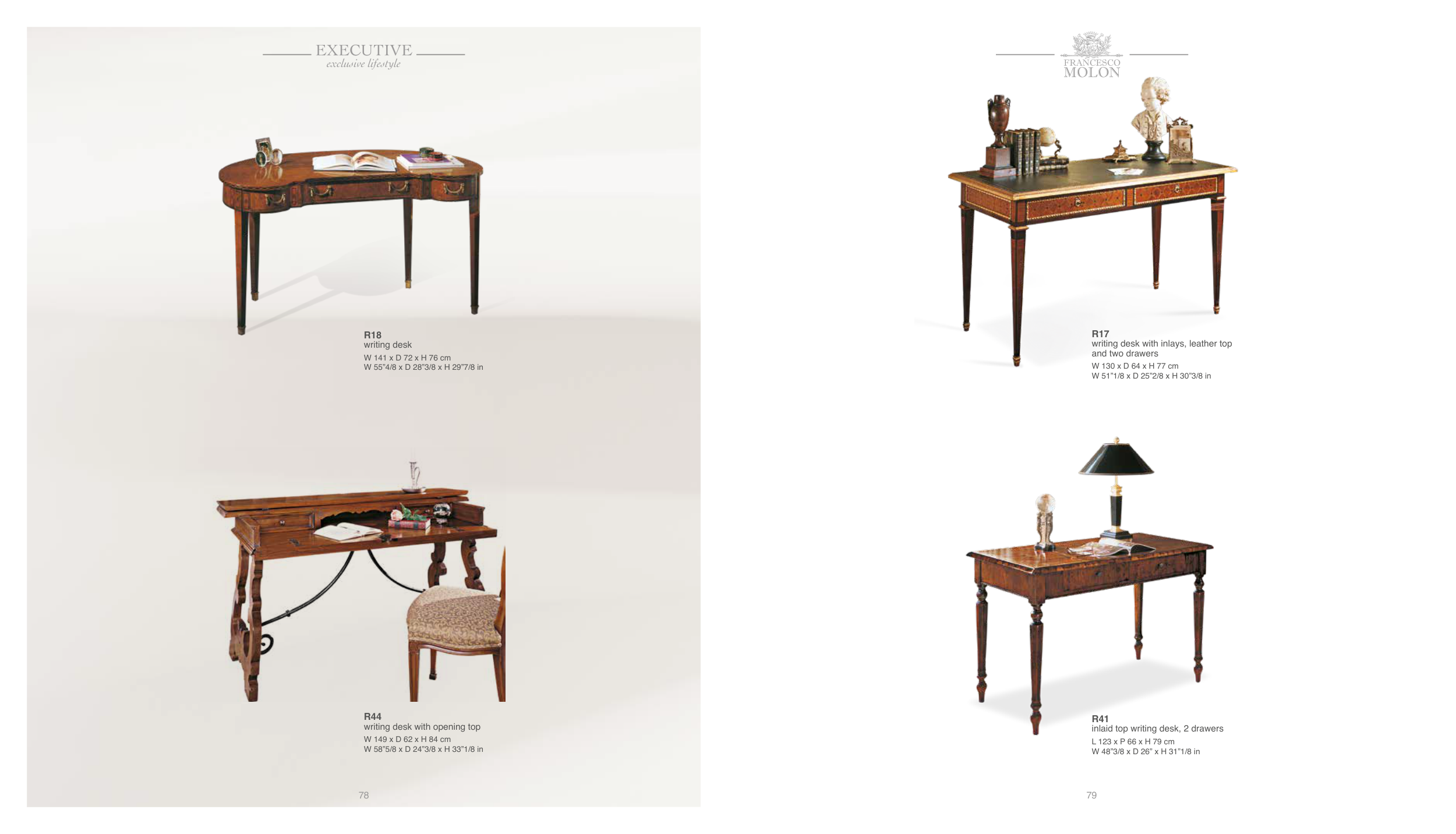 writing desk with inlays, leather top