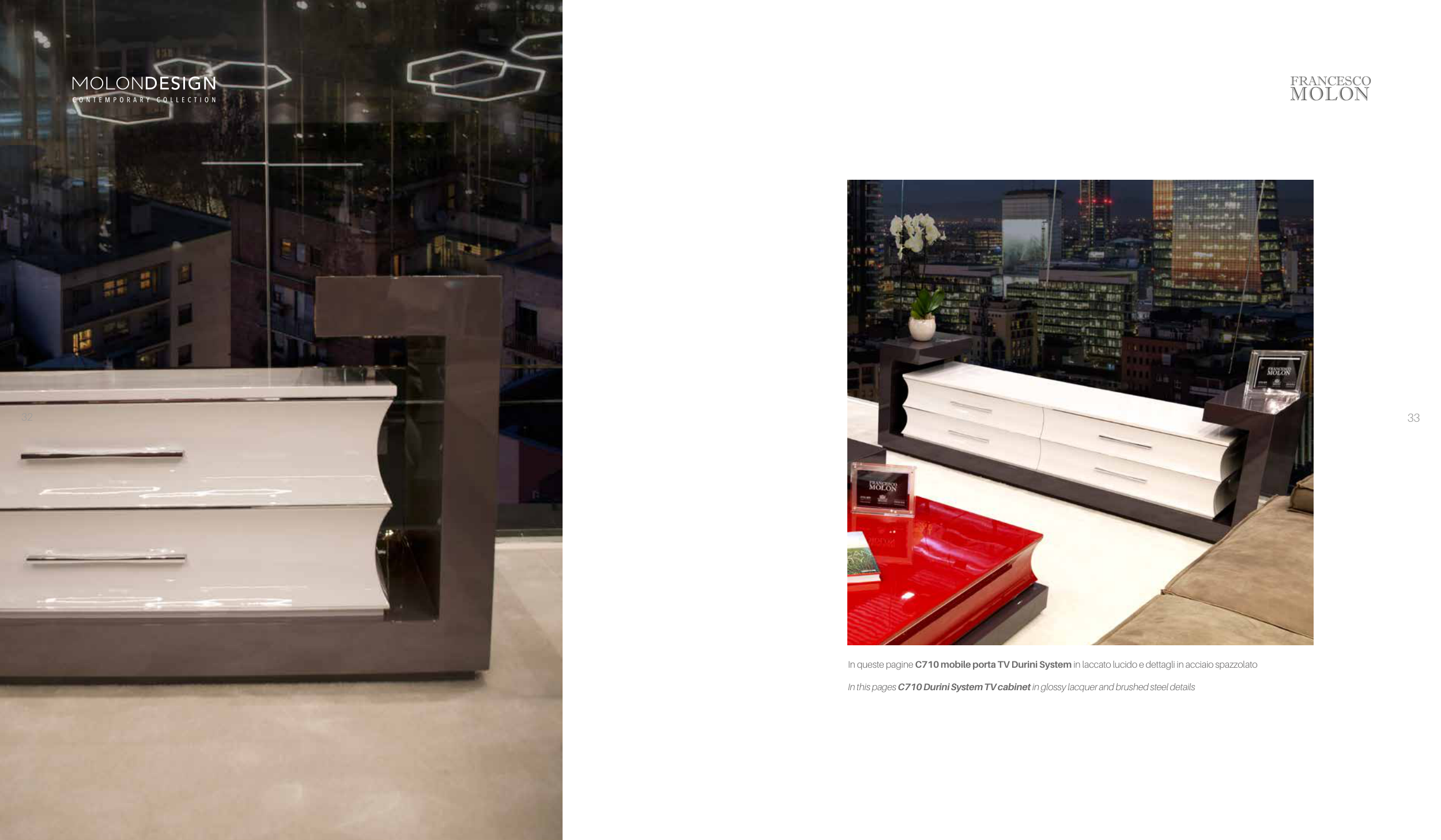 In queste pagine C710 mobile porta TV Durini System in laccato lucido e dettagli in acciaio spazzolato