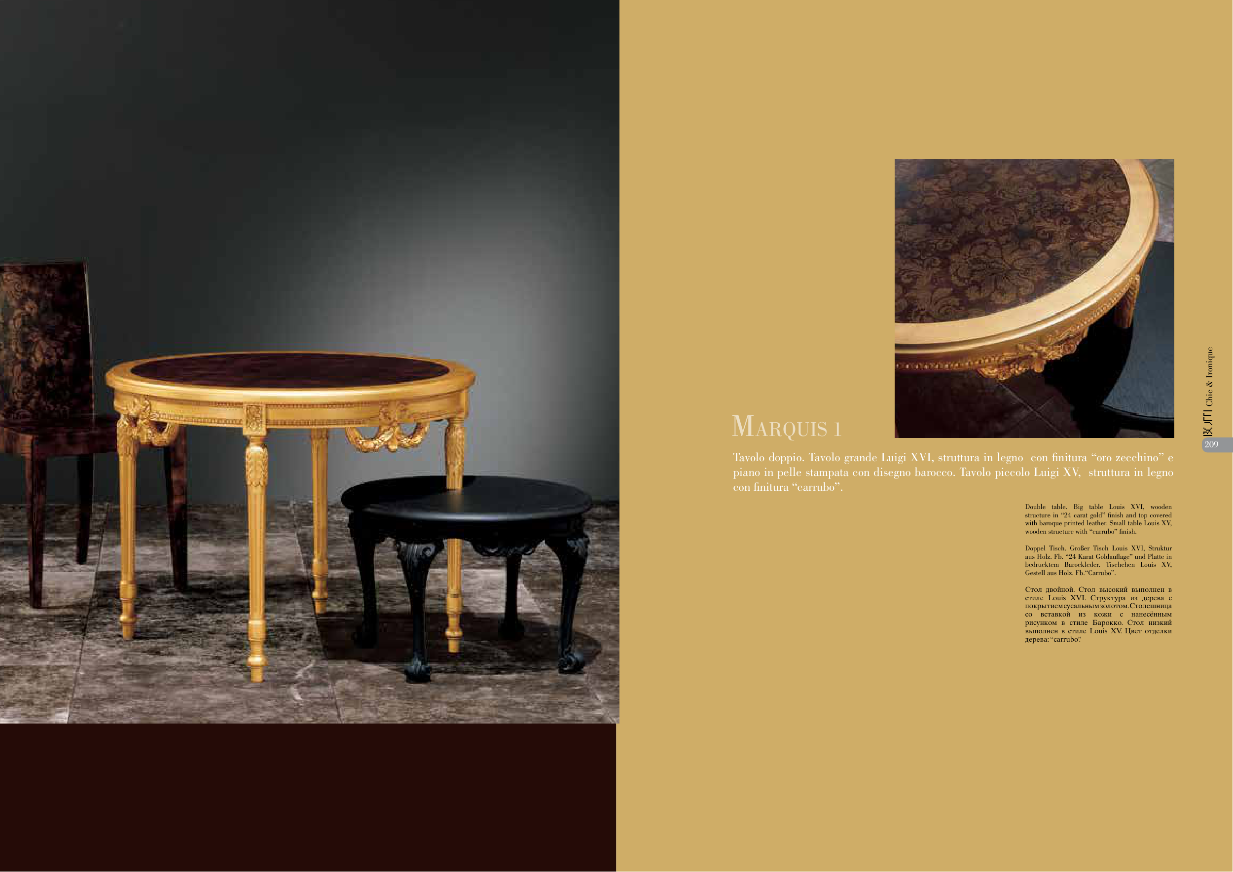 Tavolo doppio. Tavolo grande Luigi XVI, struttura in legno con finitura “oro zecchino” e