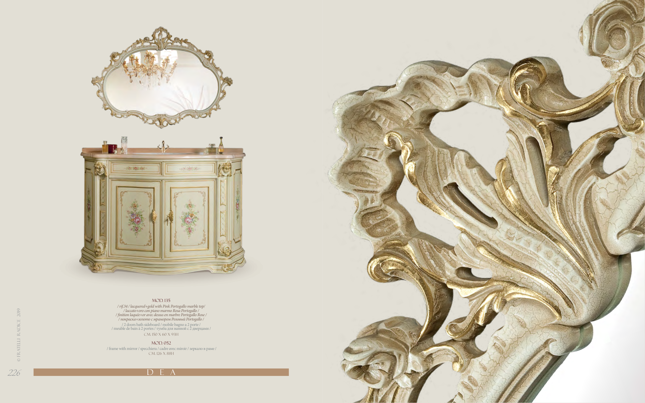 / laccato+oro con piano marmo Rosa Portogallo /