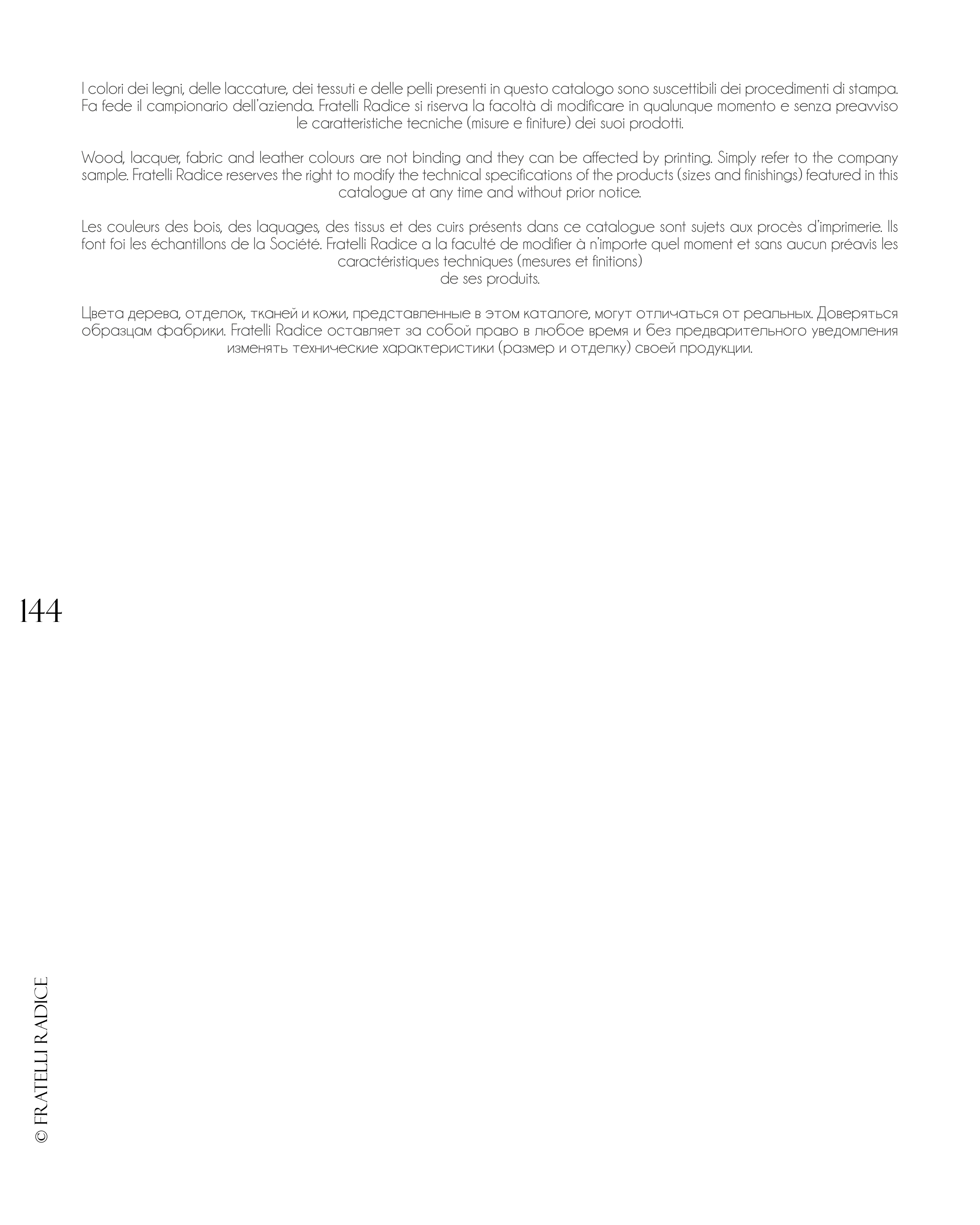 sample. Fratelli Radice reserves the right to modify the technical specifications of the products (sizes and finishings) featured in this