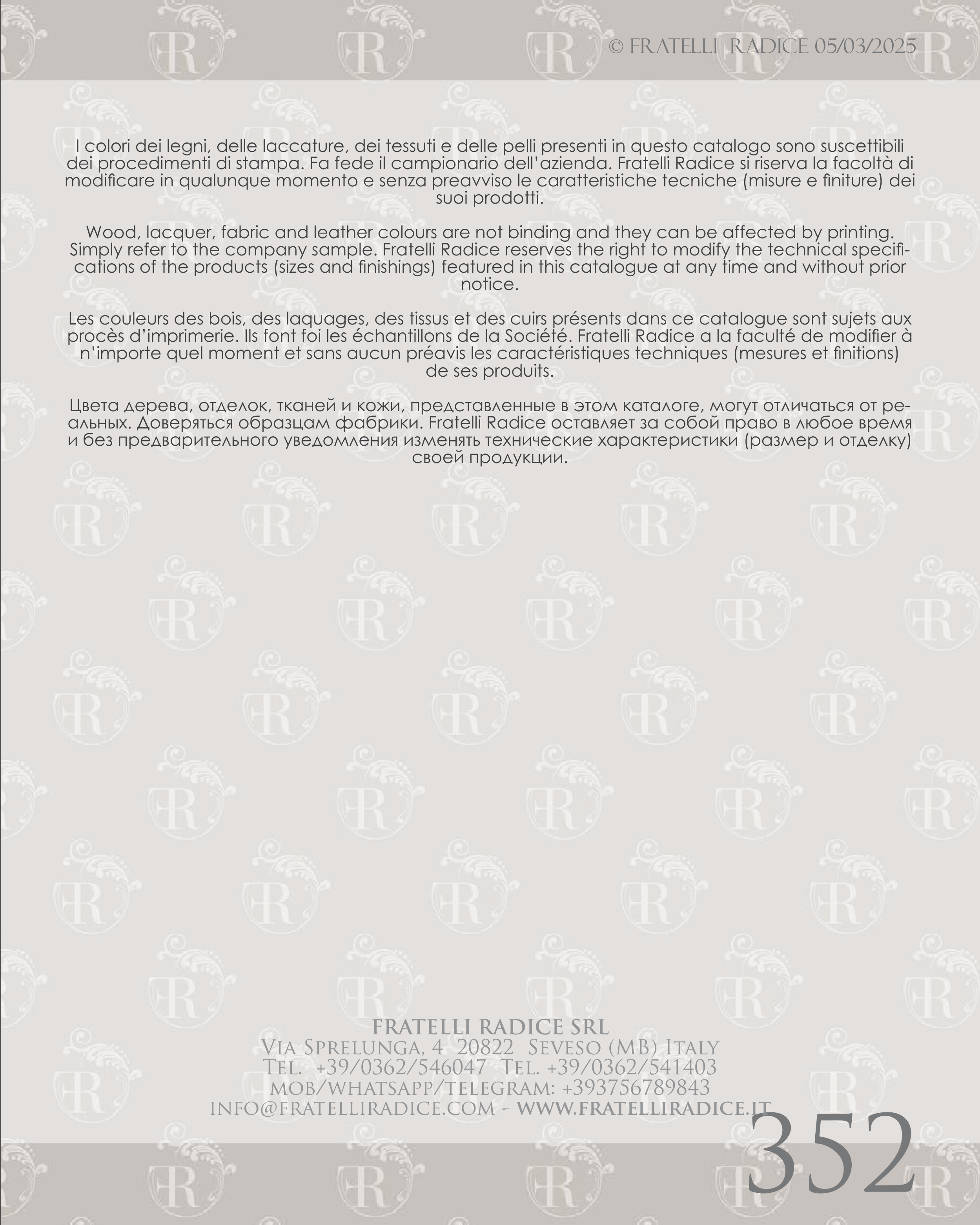 dei procedimenti di stampa. Fa fede il campionario dell’azienda. Fratelli Radice si riserva la facoltà di