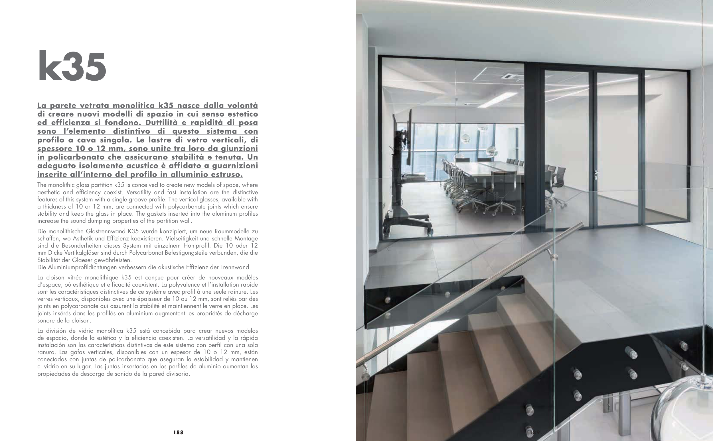 The monolithic glass partition k35 is conceived to create new models of space, where