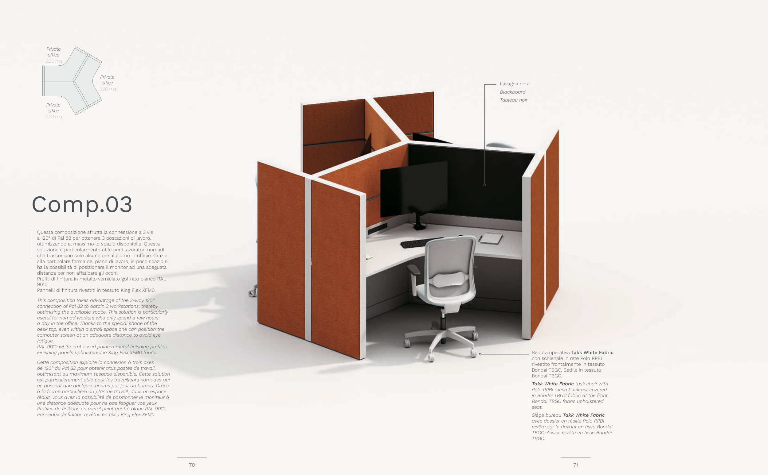 a 120° di Pal 82 per ottenere 3 postazioni di lavoro,