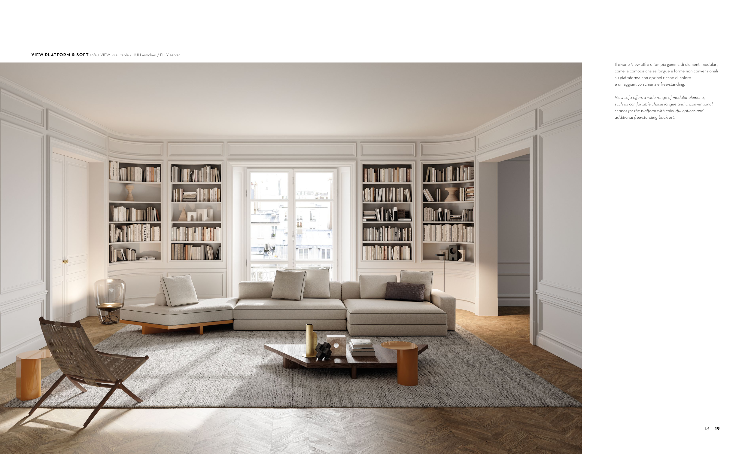 VIEW PLATFORM & SOFT sofa / VIEW small table / HULI armchair / ELLY server