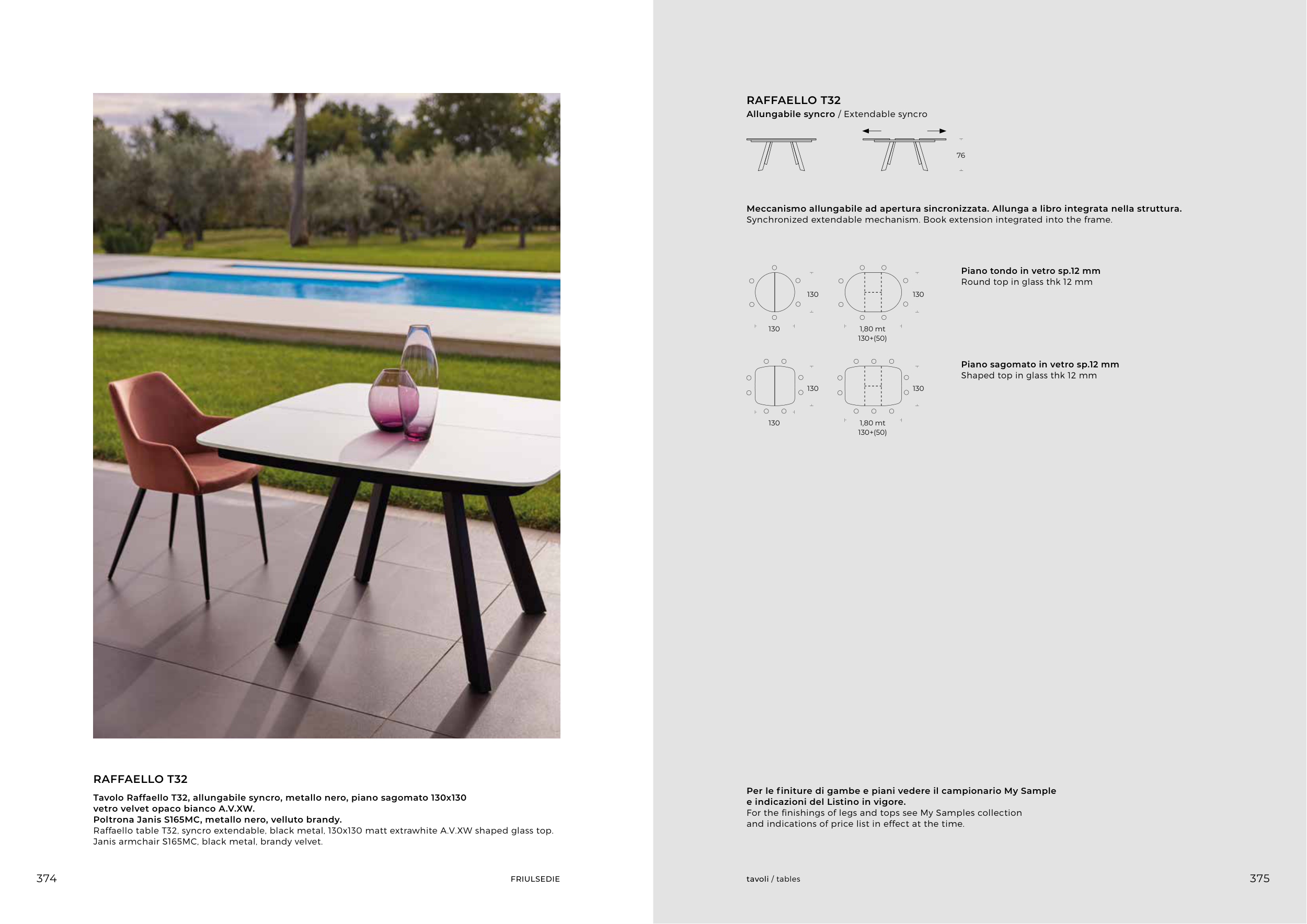 Per le finiture di gambe e piani vedere il campionario My Sample
