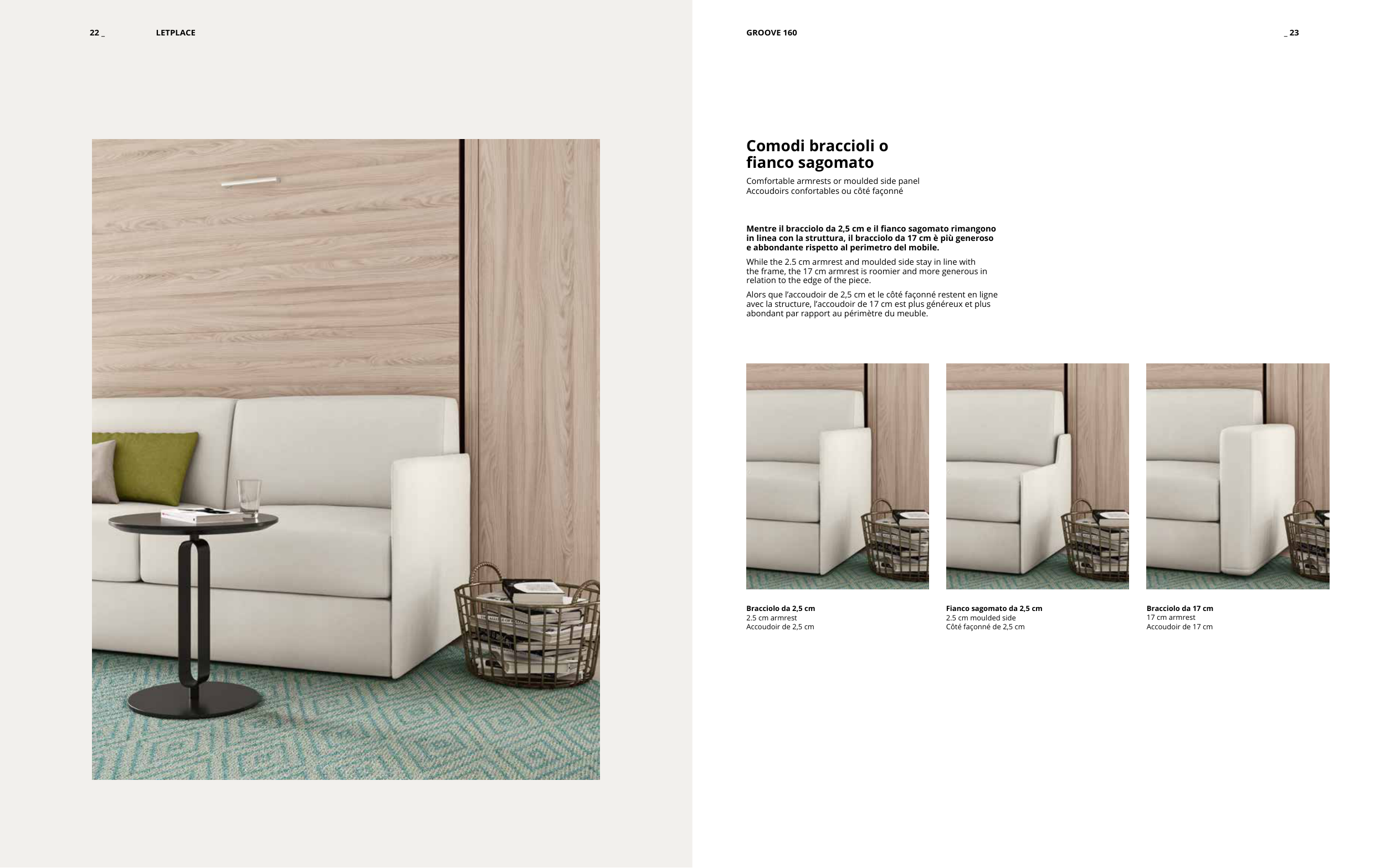 in linea con la struttura, il bracciolo da 17 cm è più generoso