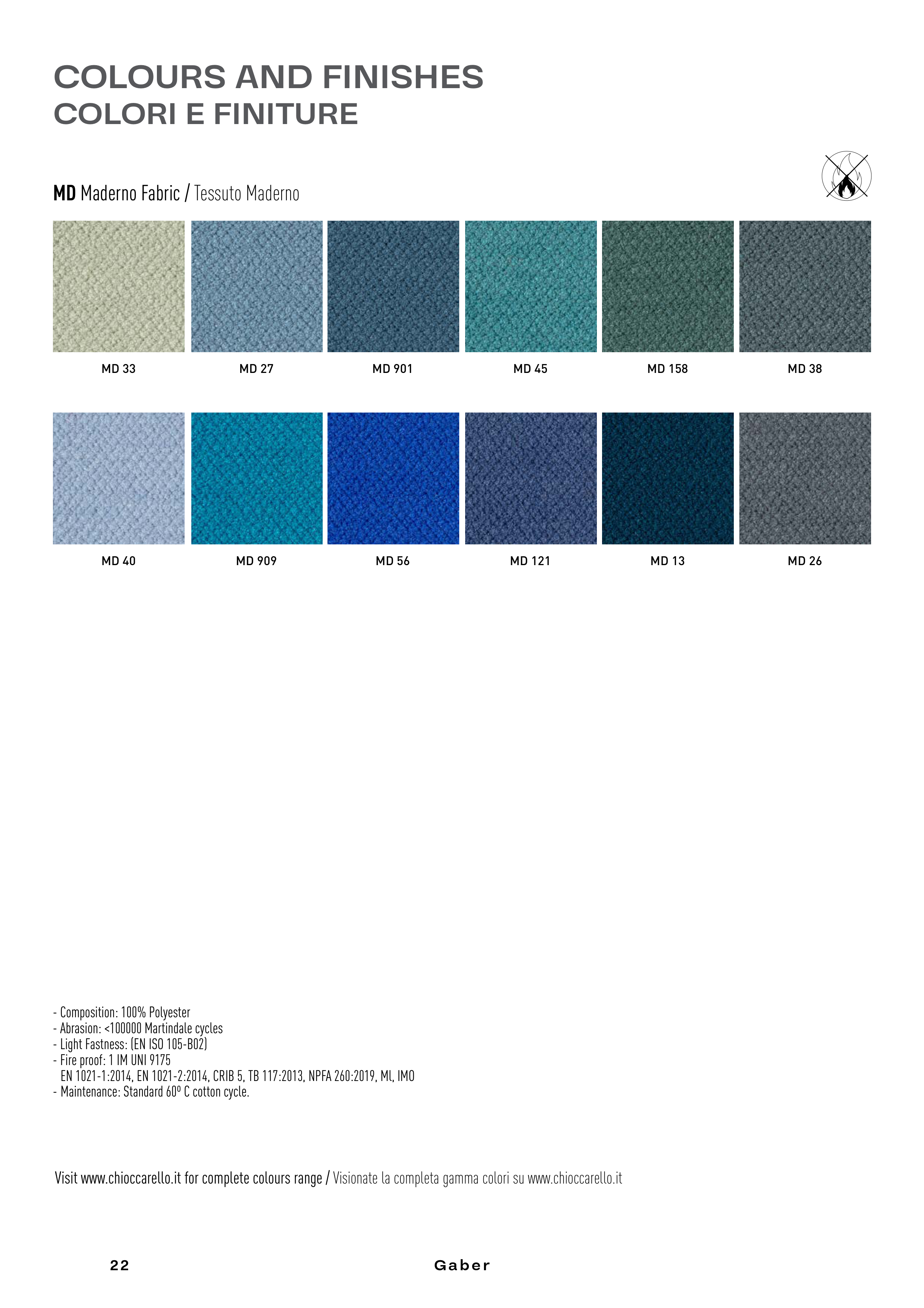 Visit www.chioccarello.it for complete colours range / Visionate la completa gamma colori su www.chioccarello.it