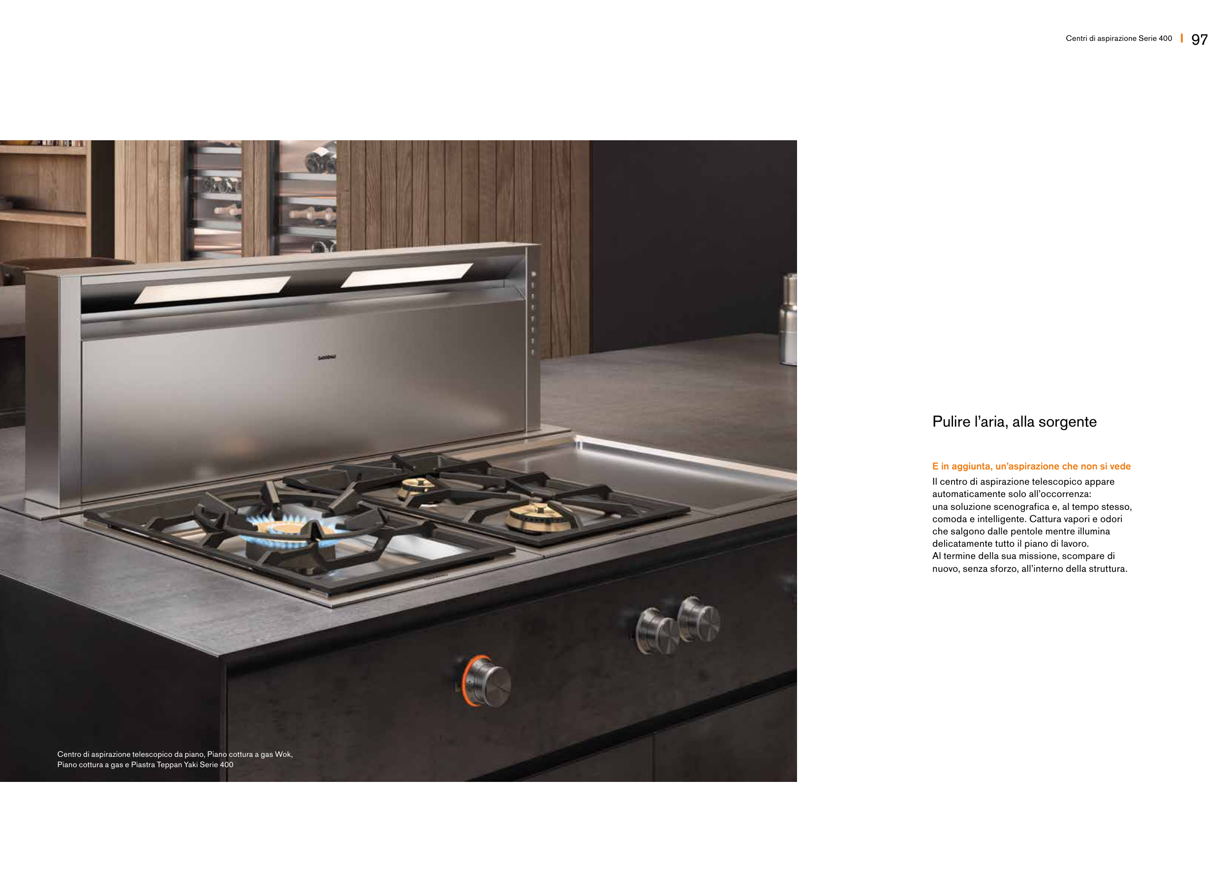 Centro di aspirazione telescopico da piano, Piano cottura a gas Wok,