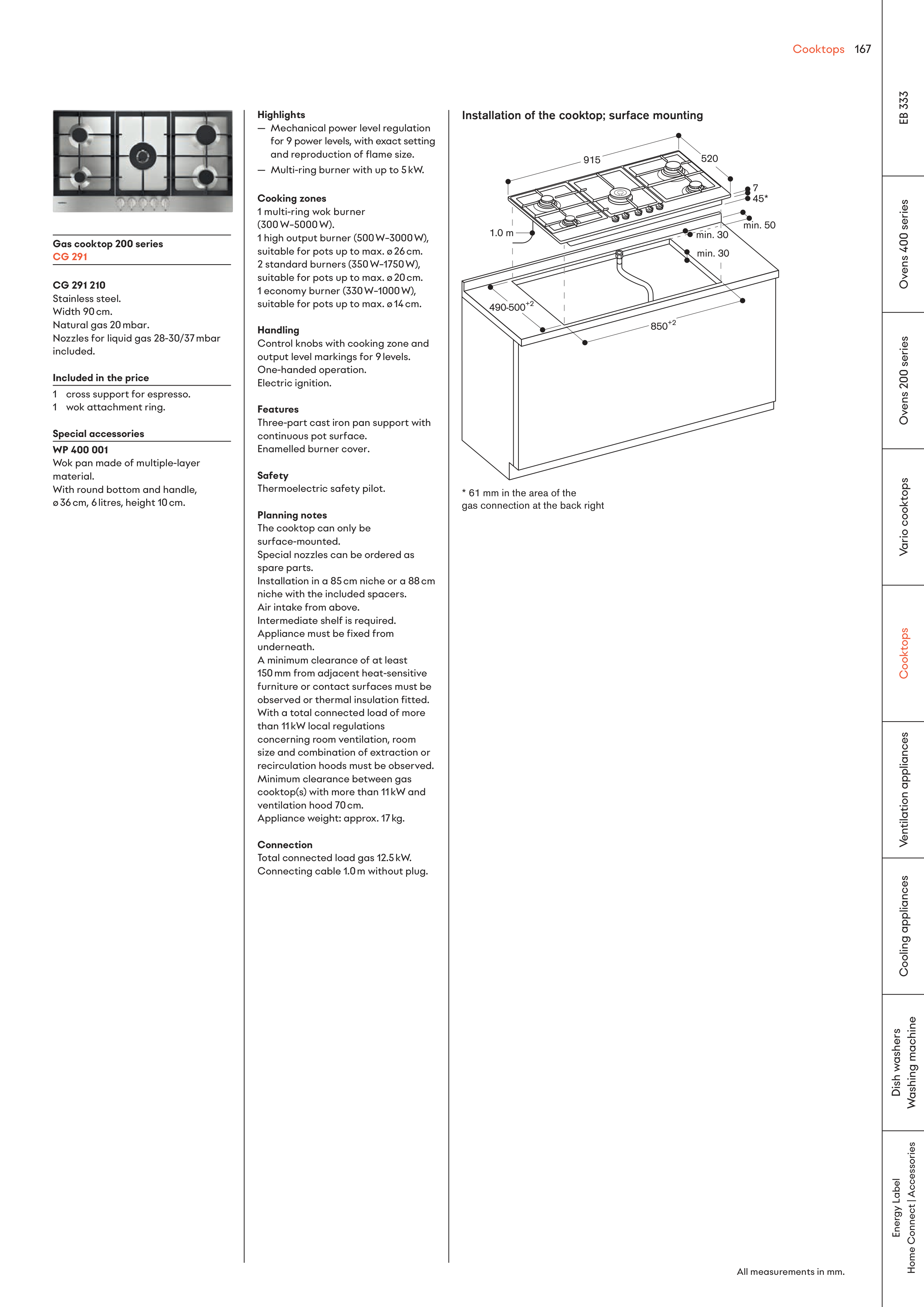 cooktop(s) with more than 11 kW and