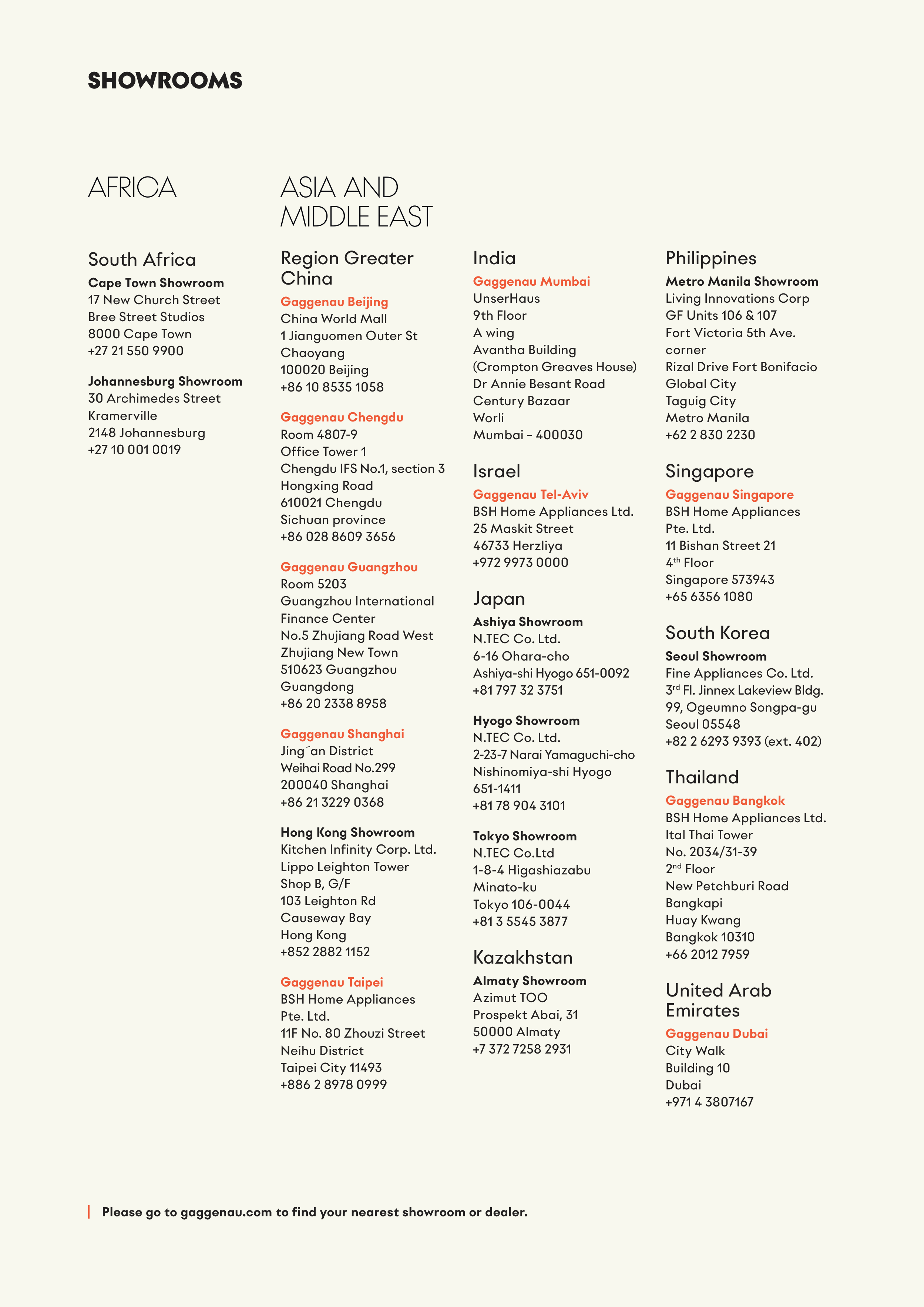 Please go to gaggenau.com to find your nearest showroom or dealer.