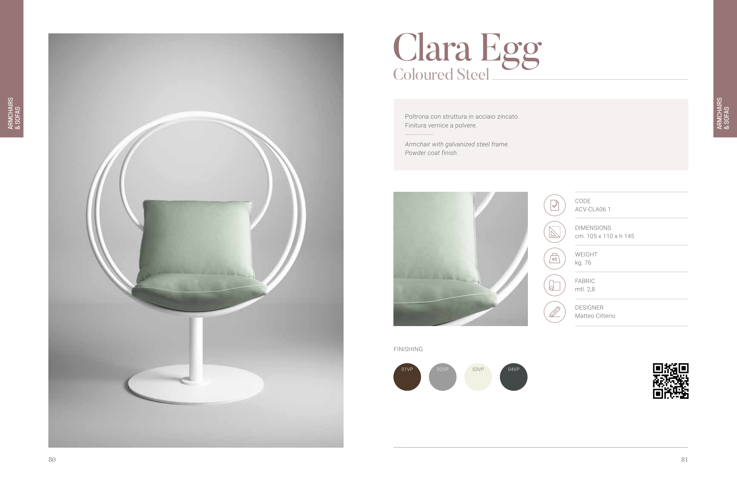 Poltrona con struttura in acciaio zincato.