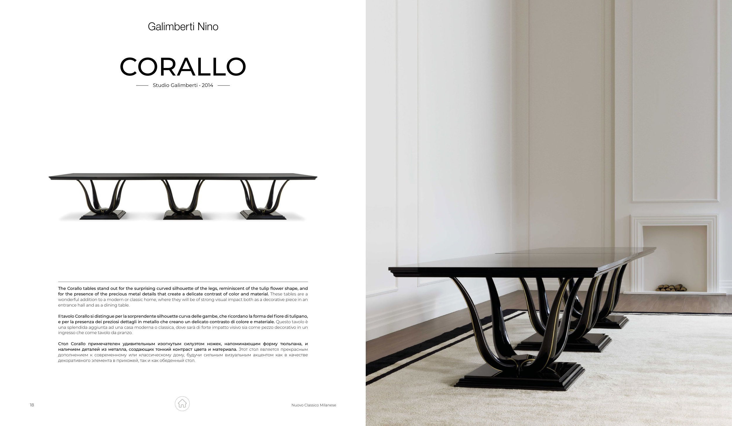 for the presence of the precious metal details that create a delicate contrast of color and material. These tables are a