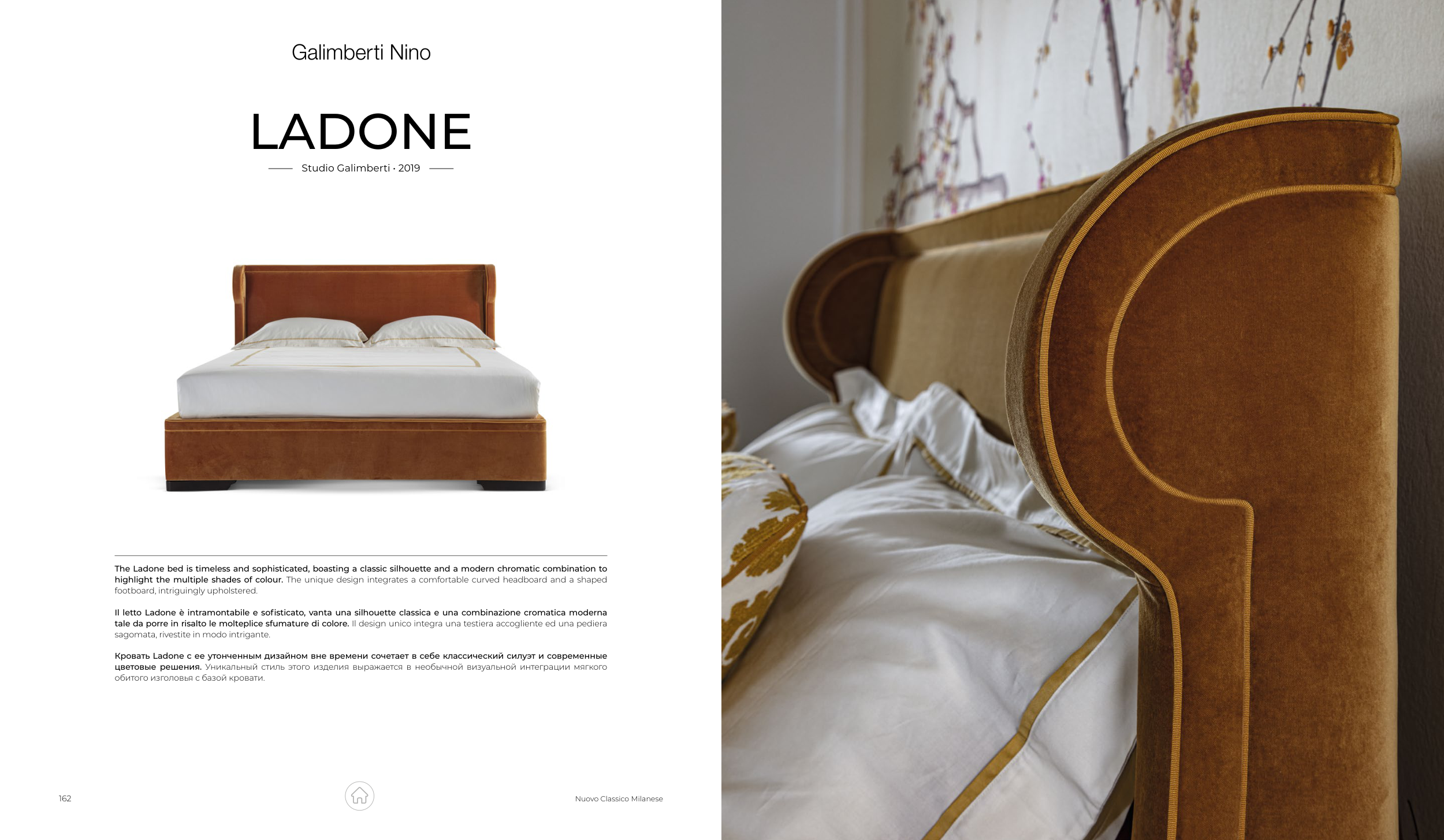 The Ladone bed is timeless and sophisticated, boasting a classic silhouette and a modern chromatic combination to